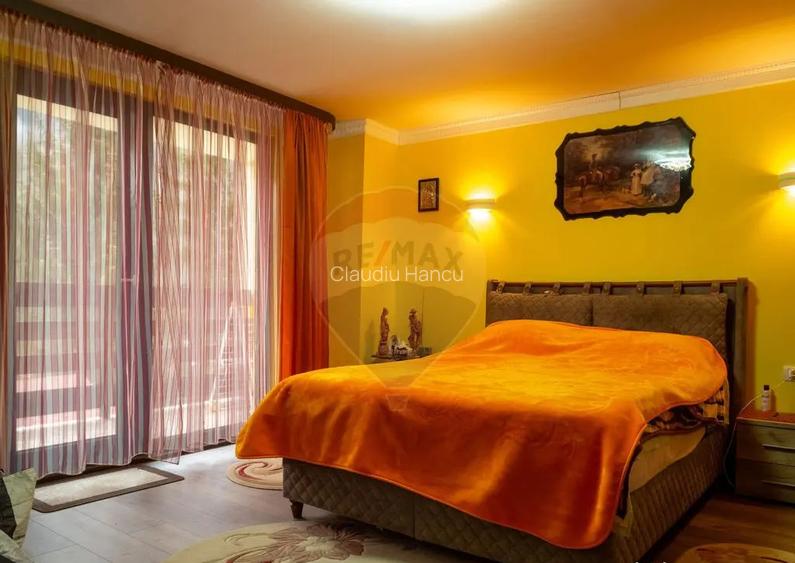 Va propun spre vanzare in sistem de reprezentare exclusiva cu COMISION 0% pentru cumparator, o proprietatedeosebita in inima statiunii Busteni locul unde confortul intalneste natura! Descoperiti o oaza de liniste si rafinament, perfect amplasata intr-una dintre cele mai cautate zone montane din Romania, cu vedere panoramica catre Muntii Bucegi si Crucea Caraiman. Proprietatea impresioneaza prin designul modern, finisajele de calitate si facilitatile de top, fiind compusa din doua corpuri de cladire independente, ideale atat pentru locuinta personala, cat si pentru investitie in turism. Primul corp de cladire (construit in 2019) Proiectat special pentru a functiona ca o pensiune, acest imobil este clasificat la 3 stele si ofera: La Parter: 1 Living generos si elegant, dotat cu un semineu pe lemne, perfect pentru seri de neuitat alaturi de familie si prieteni. 1 Dormitor cu acces la chicineta. Baie complet echipata. La Etaj: 4 dormitoare spatioase, fiecare cu baie proprie, oferind intimitate si confort. 3 dintre dormitoare beneficiaza de balcoane cu privelisti spectaculoase catre munte si padure. Al doilea corp de cladire (construit in 2023) Modern si compact, ideal pentru locuinta secundara sau inchiriere: La Parter: 1 camera, bucatarie complet utilata si baie. La Etaj: 1 camera luminoasa, bucatarie, baie si balcon cu vedere panoramica. Proprietatea dispune de o suprafata de teren de 646 mp, curte amenajata elegant alei din piatra naturala, foisor ce poate fi utilizat si iarna, gratar si spatiu verde. Ambele cladiri sunt realizate cu materiale premium si beneficiaza de contorizari separate pentru utilitati: apa, curent, gaz si canalizare. Locatie excelenta, in vecinatatea padurii, oferind intimitate, dar cu acces facil la centrul statiunii. Puncte de interes din apropiere sunt: Partia de schi Kalinderu la doar cateva minute distanta. Castelul Cantacuzino, Manastirea Caraiman, Casa memoriala Cezar Petrescu. Trasee montane: Cascada Urlatoarea, Valea Spumoasa, Jepii Mari si Mici, cabana Gura Diham. Telecabina catre Sfinx si Babele. De ce sa alegeti aceasta proprietate? Aceasta este o oportunitate unica de a detine o proprietate exclusivista intr-o statiune montana de renume, cu potential ridicat pentru exploatare turistica sau ca resedinta personala de vis. Cu o pozitionare ideala si facilitati premium, aceasta proprietate imbina confortul modern cu farmecul naturii alpine Aceasta proprietate se vinde complet mobilata si utilata, este bransata la toate utilitatile: apa, curent , gaz si canalizare, cele doua cladiri avand contorizari separate. Pentru mai multe detalii, va stau cu drag la dispozitie! Numar niveluri imobil: 1 Numar Bai: mai mult de 3 Posibilitate parcare: Da Nr. locuri parcare: 5 Curent Apa Canalizare Gaz Incalzire