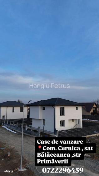 Case de vanzare in Cernica sat BalaceancaVanzare direct de la persoana fizica.Proprietati moderne, eficient compartimentate, situate pe Strada Primaverii, intr-o zona linistita, potrivita pentru locuit. Fiecare casa dispune de curte proprie si acces rapid catre Bucuresti.Suprafata teren: 400 mpSuprafata construita: 168 mpSuprafata utila: 126 mp