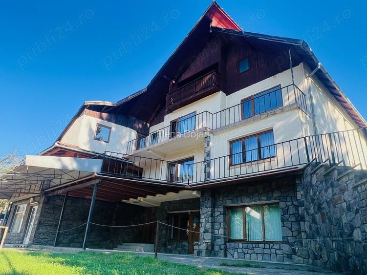 Video prezentare Situata in inima verde a ora?ului Covasna, o sta?iune montana balneo-climaterica renumita pentru aerul sau curat, mofetele ?i tratamentele pentru sanatatea inimii, aceasta proprietate ofera o oportunitate incredibila de dezvoltare intr-un hotel de tip boutique sau pensiune, sau o re?edin?a de familie spa?ioasa cu poten?ial de inchiriere Airbnb. Caracteristici cheie: Acces facil: Cu ma?ina pe drumul na?ional fiind la 56 km de ora?ul Bra?ov, la 63 km de Aeroportul Interna?ional Bra?ov-Ghimbav ?i la 207 km de Aeroportul Interna?ional Bucure?ti Otopeni. De asemenea, exista o sta?ie de autobuz la doar 100 de metri distan?a, cu servicii spre ?i dinspre Bra?ov care dureaza aproximativ o ora. Loca?ie excelenta: Proprietatea este situata chiar vizavi de cel mai mare spital de recuperare cardiovasculara din Romania (Spitalul de recuperare cardiovasculara Dr Benedek Geza) si la inceputul unei zone hoteliere (si anume 4 hoteluri de lux), suficient de distan?ate pentru intimitate, dar suficient de aproape pentru a beneficia de unele dintre serviciile de wellness pe care le ofera. Intimitate si vederi uluitoare: Pozi?ionate cu vedere spre nord, sud, est ?i vest, fiecare fereastra ofera o priveli?te unica catre mun?i ?i padure, oferind un cadru lini?tit ?i pitoresc. Spa?iu amplu: Proprietatea se intinde pe o suprafa?a totala de 1.978 de metri patra?i de teren intravilan, incluzand casa cu o suprafa?a construita de 530 de m2, anexele totalizand 200 m2 ?i 1.248 m2 de gradina. In plus, gradina are diver?i pomi fructiferi, o zona verde extinsa si un foi?or pentru luat masa cu un gratar din caramida. Detalii despre casa: Finalizata in 2002, casa este construita pe o structura din beton armat, caramida si lemn, dispunand de demisol, parter, etaj ?i mansarda. Are un total de 14 camere spa?ioase, 7 bai, 5 balcoane ?i terase extinse, ?i 1 garaj; de asemeni, o mansarda cu balcon care se poate transforma in 2 sau 3 camera adi?ionale. Proprietatea este racordata la apa, electricitate (curent trifazic), gaz ?i canalizarea ora?ului ?i este dotata cu sistem de incalzire propriu (prin calorifere sau sobe de teracota) si geamuri de tip termopan. Printre caracteristicile notabile se numara sobele de incalzire artizanale, care sunt unice ?i realizate manual, ?i podeaua din lemn natural. Amenajare versatila: Casa are 4 intrari separate, ceea ce ii permite sa fie transformata atat intr-un hotel boutique cat si in case de oaspe?i (pensiuni) diferite, maximizand poten?ialul sau de inchiriere. Si anume, (1) O zona de demisol cu 2 dormitoare cu baie proprie, un spa?iu pregatit pentru o bucatarie ?i o terasa cu vedere; (2) Un parter cu 2 dormitoare cu baie privata ?i un etaj cu 2 dormitoare suplimentare care impart o baie, plus o terasa spa?ioasa cu vederi magnifice; ?i (3) O zona principala cu 6 camere mari, un spa?iu pregatit pentru o bucatarie, 2 bai ?i 3 terase intinse cu vedere; (4) un spa?iu format dintr-o camera mare cu vedere spre strada principala si o camera demisol care poate fi transformat si inchiriat cu scopuri diverse, de exemplu: magazin, mic restaurant, zona co-working, cabinet de consulta?ii (medical) etc. Poten?ial de dezvoltare suplimentar: Mai multe anexe de pe proprietate pot fi dezvoltate in continuare in cazari suplimentare pentru oaspe?i, facand din aceasta o investi?ie cu adevarat unica. Mai exact, (1) o bucatarie de vara, o magazie si un fost grajd pentru animale au poten?ialul de a fi renovate in studiouri separate, (2) in timp ce hangarul ar putea fi transformat intr-o piscina, mansarda spa?ioasa si sau zona de divertisment. Covasna are poten?ial de cre?tere semnificativ oferind un stil de via?a relaxant la munte. Este o bine-cunoscuta sta?iune turistica, renumita pentru tratamentele cardiace, baile minerale terapeutice ?i mofete. Vizitatorii se pot bucura, de asemenea, de activita?i de wellness, aer curat ?i trasee de drume?ii pitore?ti pe jos, cu bicicleta sau motocicleta. Ora?ul are propria partie de schi, cu o alta situata la 15 km in padure. Exista mai multe hoteluri ?i un mare centru de wellness in prezent in construc?ie. Apropierea Covasnei de Bra?ov o face o alternativa atragatoare pentru cei care doresc confortul unui ora? mare in apropiere, bucurandu-se in schimb de un stil de via?a mai sanatos ?i mai lini?tit. ID anun? : 1728469588