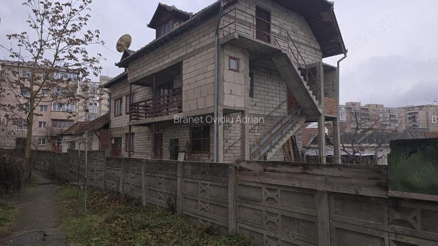 Vand imobil in Deva compusa din 2 corpuri de cladire, zona centrala, suprafata totala de teren 804 mp, acces auto in curte din 2 parti, pretabil pentru locuit sau firma. Primul corp este constructie pe un singur nivel din caramida din anul 1959, suprafata construita aproximativ 80 mp, compus din 2 camere, hol, 2 bai si beci. Incalzirea se face cu centrala termica pe gaz si in prezent functioneaza ca spatiu comercial (Frizerie). Al doilea corp; S+P+E + pod mansardabil, constructie la rosu din BCA si cadre de beton din anul 1994 acoperita cu pod si tigla, suprafata construita aproximativ 300 mp (100 mp nivel), toate utilitatile trase in interior. IMOBILUL ESTE PRETABILA PENTRU LOCUIT, PENSIUNE, BIROURI SAU SPATIU COMERCIAL. Pret: 350 000 euro negociabi. Tel: