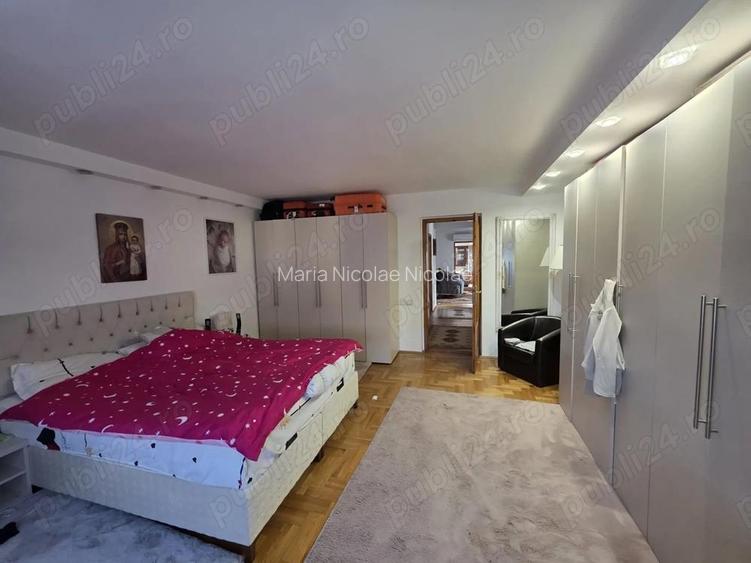 Casa cu parter ?i mansarda, avand o suprafa?a construita de 277 mp, amplasata pe un teren de 387 mp, cu o amprenta la sol de 170 mp, zona ultracentrala. Imobilul dispune de un beci format din trei incaperi, dintre care doua spa?ioase ?i una de dimensiuni mai mici. La parter se afla un living generos cu bucatarie open-space, baie, hol, sufragerie, un dormitor ?i scara interioara catre etaj. Mansarda cuprinde doua dormitoare, o camera pentru copil, hol, baie ?i o terasa acoperita de aproximativ 50 mp, cu acces direct din unul dintre dormitoare. Casa este dotata cu centrala termica, geamuri termopan, parchet din lemn, patru aparate de aer condi?ionat ?i panouri fotovoltaice, oferind confort ?i eficien?a energetica. Proprietatea reprezinta o op?iune potrivita pentru cei care cauta o locuinta spa?ioasa, bine compartimentata ?i moderna. ID anun? : 1774191367
