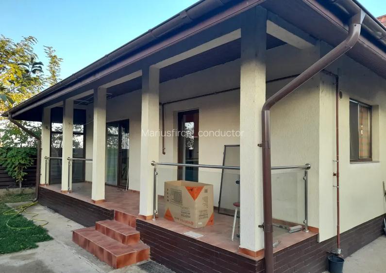 Proprietar VAND/SCHIMB/INCHIRIEZ casa individuala in Domnesti Ilfov, STRADA MUNTII RODNEI. Constructie noua 2020 din caramida Porotherm, izoltatie 10 cm cu o suprafata de 123 m2 utili , 442 m2 teren. Toate utilitatile. Mobilata si utilata, la cheie. Totul amenajat cu bun gust. Vi cu hainele si te ai mutat intr o oaza de liniste si aer curat. Vila este single, nu duplex, nu triplex, nu casa insiruita .Drum privat 9 m latime, cu vecini linistiti si civilizati. Magazine si scoala, gradinita in apropiere. RATB la 5 minute de mers. pe jos. Posibilitati multiple de a ajunge in Bucuresti. Casa este decomandata, are 2 dormitoare spatioase, unul cu baie matrimoniala, un living luminos cu deschidere la terasa, 2 bai cu ferestre, bucatarie generoasa, cu deschidere la terasa, debara, hol spatios, in forma de L. Podul este mansardabil. Terasa acoperita comunica cu livingul si bucataria. Baile au geam. Casa are 2 puturi de mare adancime, statie de dedurizare si filtru de apa profesional. Centrala in condensatie asigura confortul termic iarna cu cheltuieli minime iar canalizarea se efectueaza prin fosa septica. Curtea este amenajata cu pomi fructiferi, brazi si gazon. Locuri de parcare 4 irerior si 3