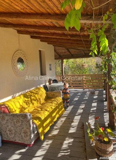 Casa renovata ?i izolat cu vata bazaltica, structura parter din living open space cu bucatarie, dormitor, baie, hol. Etaj cu 3 dormitoare ?i o baie. Teren 3000mp cu pomi fructiferi pe rod pruni, nuci, meri, peri, vi?ini, vita de vie, mure. - An constructie initiala 2005, Renovare ?i extindere P+M 2025 - Funda?ie din beton armat, structura casa din cadre de lemn ?i pere?i din BCA. - Sistem fatade termoizola?ie 15cm grosime din vata bazaltica Rockwool, tencuiala decorativa, tamplarie PVC cu 7 camere ?i 3 sticle. - La interior to?i pere?ii placa?i cu gips-carton ?i cei exteriori termoizolate cu vata minerala de 5 cm grosime - Planseu peste parter din grinzi de lemn de 15cm, dulapi de lemn de 5cm, umplutura cu vata bazaltica de 15cm intre grinzi, tavane din gips carton finisate - Sistem de incalzire prin pardoseala pe toata suprafa?a parterului peste termoizola?ie de polistiren XPS, la etaj incalzire cu calorifere, sursa de incalzire Termosemineu pele?i - O soba de teracota, pe lemne, existenta intre dormitor ?i baie - Conectata la re?eaua de apa a localita?ii. Apa calda menajera de la boiler electric 100L pe Baie complet echipata (Cada, chiuveta, vas wc) ?i boiler electric 15L pentru. - Finisaje pardoseli: Baie - gresie rectificata 90x90cm ; Hol intrare: Gresie rectificata 90x90cm; Livingroom, Dormitor, Bucatarie : parchet laminat 9mm grosime - Finisaje perti: Gips Carton gletuit ?i lavabila alba, tencuiala decorativa de interior in dormitor, lavabila bej pentru spa?ii cu umiditate crescuta in baie - Acopareis tabla plana zincata, doua Velux-uri, termoizolat cu 15cm vata minerala. Bariera de vapori, placat cu Gips-carton. - Terasa cu suprafa?a de 30mp acoperita cu tabla plana pe doua laturi ale casei ID anun? : 1768298107