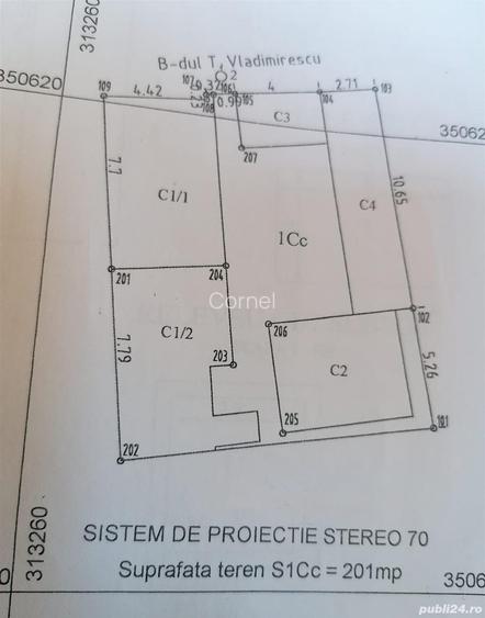 Proprietate de 200 mp situata intre strazile Cicero ?i Hora?iu, pe bulevardul Tudor Vladimirescu zona cu vad excelent ?i acces rapid. Pe teren se afla doua corpuri de locuin?a (72 mp ?i 26 mp), un chio?c (10 mp), o anexa (28 mp) ?i un beci. Front stradal: 12 metri. Construc?iile necesita renovare sau pot fi demolate. Ideal pentru proiect reziden?ial, spa?ii comerciale, clinici, banci sau birouri fiind o oportunitate foarte buna pentru dezvoltatori sau investitori. Certificat de urbanism emis recent Utilita?i disponibile in zona: electricitate,gaz, apa, canalizare ID anun?