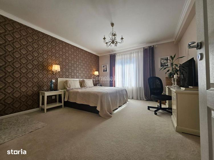 Activ Imob va propune spre vanzare o vila individuala superba, moderna ?i complet mobilata utilata, in zona premium Militari Residence (Ro?u, Sector 6). Construita inteligent P+1+M, cu suprafa?a utila de apx 270 mp (include si mansarda locuibila pe toata amprenta) + curte generoasa de apx 550 mp. Gata de mutat maine zero renovari, finisaje high-end, mobilier modern ?i electrocasnice incluse! Loca?ie excelenta: Doar 300 m de celebrul Militari Residence Ballroom (ideal pentru evenimente), acces rapid la Centrul Comercial Militari, metrou, ?coli, gradini?e, supermarketuri, parc ?i ie?ire spre Centura A1. Zona lini?tita, cu comunitate buna ?i toate facilita?ile la indemana. Compartimentare spa?ioasa & luminoasa : - Parter (open & welcoming): Bucatarie moderna super-eleganta cu insula + bar cu scaune, camara generoasa, living ultra-luminos cu geamuri inalte ?i acces spre curte (efect wow, lumina naturala toata ziua!), 1 dormitor spa?iu birou, 1 baie complet utilata. 2 intrari separate perfect pentru intimitate sau birou acasa. - Etaj (zona intima de noapte): 3 dormitoare spa?ioase, inclusiv matrimonial master cu baie proprie + dressing uria? (vezi pozele rafturi multe, spa?iu pentru haine sezonier). 1 baie comuna eleganta. - Mansarda superba (inca un nivel full locuibil): Pe intreaga suprafa?a a casei 2 camere suplimentare + spa?iu dressing mare + zona dedicata spalatorie (ma?ina spalat, uscator, loc intins rufe). Complet mobilata: pat matrimonial ro?u statement, zona relaxare cu canapea, rafturi car?i, aer condi?ionat. Ideal pentru oaspe?i, birou, gym sau camera copii tineri! Dotari & finisaje premium (totul nou ?i modern): Mobilier & electrocasnice complete (bucatarie high-end cu insula, living smart cu TV mare, dormitoare elegante cu paturi tapi?ate, dressinguri organizate) Parchet lemn deschis, gresie faian?a premium, vopsea lavabila, u?i interioare albe moderne, spoturi LED Lumina naturala excep?ionala (mansarda cu ferestre Velux, geamuri inalte la parter living) Curte amenajata: loc parcare cu priza dedicata ma?ina electrica (rar ?i super util!), gratar fix + terasa acoperita pentru BBQ seri relaxante. Mai multe detalii la telefon.