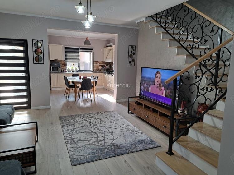 Vand casa P+1 , separata prin garaj , in Dumbravi?a TM , str.H.C.Andersen. Casa are pe parter : living cu bucatarie , birou dormitor, baie , camera tehnica , spa?iu de depozitare.Etajul este format din trei dormitoare , doua bai ?i dresing .Dormitorul matrimonial are baie proprie ?i dresing. Casa se vinde complet mobilata ?i utilata. Curtea are in dotare o magazie , gratar , terasa cu mobilier de gradina. Casa este dotata cu 2 aparate AC , sistem alarma , sistem supraveghere video , poarta ?i garaj ac?ionate automat. ID anun? : 1726152812