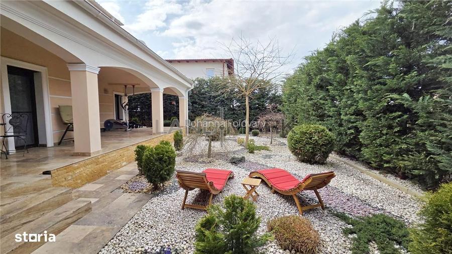 etaj se gasesc trei dormitoare spa?ioase, o baie mare dotata atat cu cada, cat ?i cu du?, precum ?i acces la pod prin trapa.Suprafa?a utila a casei este de 192 mp, cu o suprafa?a construita de 290 mp, amplasata pe un teren de 508 mp, cu un front generos de 21 ml. Curtea este amenajata cu bun gust, complet pavata, pini si plante ornamentale superbe, ajunse la maturitate.Amenajarile interioare sunt realizate cu accent pe confort ?i eficien?a: tamplarie cu geamuri tripan ?i rulouri automatizate, sistem de aer condi?ionat instalat atat la parter, cat ?i la etaj. Locuin?a dispune de spalatorie complet utilata cu ma?ina de spalat ?i uscator AEG. Construc?ia este solida, cu placa de beton intre niveluri ?i pod izolat, asigurand un bun confort termic pe tot parcursul anului.Din punct de vedere tehnic, casa beneficiaza de pompa de caldura, hidrofor, boiler ?i sistem de filtrare a apei.Sistemul de incalzire este eficient ?i versatil, realizat prin centrala termica pe gaz cu distribu?ie prin pardoseala, asigurand un confort termic optim. In plus, exista ?i alternativa utilizarii pompei de caldura pe curent. Proprietatea beneficiaza de panouri solare montate pe acoperi? pentru prepararea apei calde, contribuind la reducerea costurilor de intre?inere ?i la un consum energetic eficient. Aceasta proprietate imbina perfect stilul, confortul ?i func?ionalitatea, oferind un cadru ideal pentru o via?a lini?tita, aproape de natura, dar cu acces facil catre ora?. Pretul este de 770.000 euro negociabil .ID intern:210830.