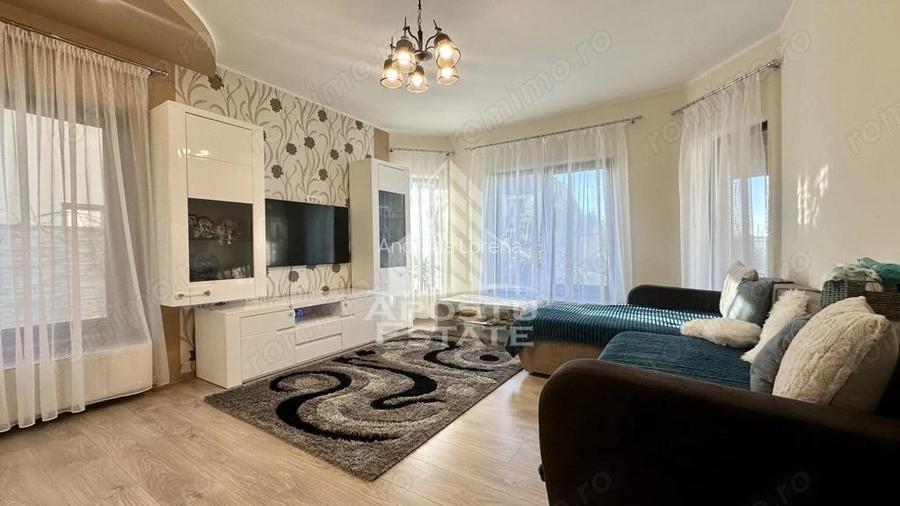 APOSTU ESTATE va propune spre vanzare o casa individuala cu 4 camere, situata in Dumbravita, pe strada asfaltata, intr-o zona rezidentiala linistita, formata exclusiv din case. Proprietatea impresioneaza prin arhitectura moderna, compartimentarea eficienta si terenul generos, fiind alegerea ideala pentru o familie care isi doreste confort, spatiu si intimitate. Se vinde complet mobilata si utilata, gata pentru mutare imediata. Detalii proprietate Suprafata utila: 140 mp Teren: 820 mp Compartimentare Parter: Hol de acces primitor Baie moderna Bucatarie luminoasa cu acces la terasa Camera tehnica Living spatios cu zona de dining si acces catre terasa Terasa acoperita, perfecta pentru relaxare in orice sezon Garaj Etaj: 3 dormitoare Baie suplimentara Hol aerisit Dotari si facilitati Centrala proprie pe gaz Aer conditionat Se vinde complet mobilata si utilata (mobilier modern si electrocasnice incluse) Toate utilitatile: apa, canalizare, gaz, curent trifazic Curtea este amenajata cu gazon, pomi fructiferi si plante ornamentale. Zona suplimentara de parcare in curte se pot parca pana la trei masini Aceasta proprietate ofera un echilibru excelent intre linistea zonei, spatiul interior bine compartimentat si curtea generoasa, ideala pentru relaxare si petrecerea timpului in aer liber. O locuinta moderna, complet echipata, situata intr-una dintre cele mai apreciate zone din Dumbravita perfecta pentru o mutare fara investitii suplimentare. CP2922736 ID anun? : 1771040153