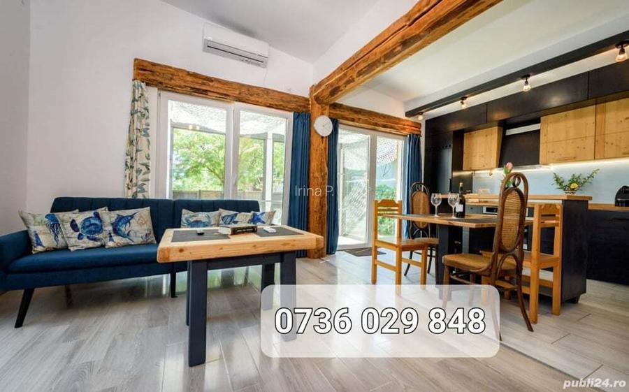 Proprietar vinde vila parter in stil mediteranean, construita 2022, suprafata 100 mp si teren 343 mp, mobilata si utlilata, cu gradina, bucatarie de vara si parcare ampla in interiorul proprietatii. Proprietatea este situata intr-o zona linistita, la circa 15 minute mers pe jos de plaja, si are in apropiere magazine, farmacii, scoala, restaurante. Prosumer, instala?ie fotovoltaica care asigura necesarul de electricitate pentru incalzire, aer condi?ionat, apa calda, gatit etc. Vila este compusa din living si bucatarie open space, 2 dormitoare, 2 bai si o terasa acoperita. Accesul in casa se face din terasa laterala in holul central. De aici se poate intra in dormitoare, baia principala si living. Un semineu ultraperformant cu 2 camere este amplasat la intrarea in living. Zona semineului si holul central au pardoseala de piatra naturala. Livingul este definit de grinda de lemn masiv de 8 m lungime veche de 300 ani adusa din Transilvania. Aerul conditionat Midea racoreste interiorul in zilele toride de vara. O insula si masa de lemn natural pentru 4 persoane separa bucataria de living. Bucataria este utilata cu elecrocasnice de calitate: frigider, masina de spalat vase, aragaz si hota incorporate in mobilierul de lemn masiv facut pe comanda. Bucataria mai contine masina de spalat cu uscator si acces la o debara camara de 2mp cu rafturi. Din living si bucatarie se poate iesi in terasa inchisa in sticla cu usi glisante si geamuri cu deschidere electrica pe verticala. Dormitorul matrimonial are un hol cu dulap inzidit, baie proprie si iesire la gradina din fata. Dormitorul al 2-lea are acces la terasa de la intrare. Spatiile de depozitare generoase sunt ascunse pentu a pastra un interior elegant, simplu si ordonat. Aspectul modern eclectic este creat de imbinarea reusita a lemnului masiv, zidaria de caramida, albul simplu al peretilor si tavanelor si sticla usilor si a terasei. La constructia casei s-au folosit materiale si finisaje de cea mai buna calitate, tamplarii Barrier cu 3 foi de sticla, lemn si piatra naturala. In gradina din spate se afla un splendid arbore de matase, copacul fericirii si al linistii, impreuna cu un cires, un smochin si trandafiri. Bucataria de vara este dotata cu dulapuri si tamplarii de lemn masiv, bancuta de colt si un perete mobil detasabil. In gradina mai avem un bol de foc german pentru zile cu gratare si nopti petrecute la lumina focului. Plus spatii depozitare lemne foc, unelte gradina, sezlonguri etc. Un sistem de supraveghere video Hikvision cu functii inteligente, camere AcuSense 4.0MP si aplicatie dedicata pe telefon mobil asigura securitatea si monitorizarea de la distanta. ID anun? : 1710062742