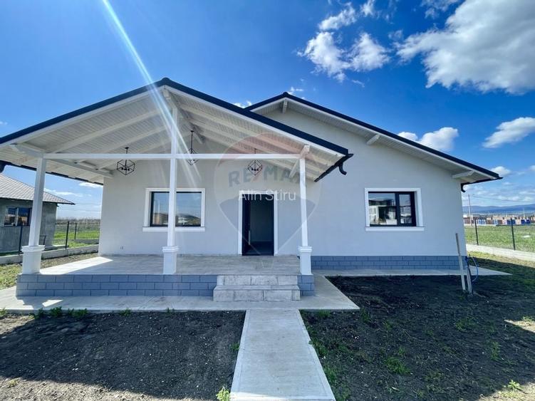 Situata pe un teren in suprafata de 497 mp , casa are o suprafata construita de 125 mp si este compusa din trei dormitoare, hol, doua bai, living cu bucatarie open space, terasa!
