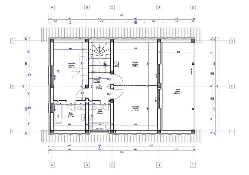 Pretul este de 240.000 euro, TVA 21% inclus. Pentru achizitionarea constructiei de catre o societate comerciala platitoare de TVA se va aplica sistemul de taxare inversa, rezultand un pret net de 198.350 euro. Un nou proiect aflat in derulare are ca obiect edificarea unui ansamblu de 9 case individuale (finalizate primele doua), cu regim de inaltime Parter+Mansarda,109 mp util, la care se adauga 47 mp terasa acoperita, intr-o zona foarte linistita, in imediata apropiere a Motelului, respectiv Lacului Gilau (280 m), oferind totusi multiple posibilitati de a ajunge cu usurinta atat spre zonele turistice ale judetului Cluj, cat si accesul catre drumul european E60. Parterul dispune de living, hol, dressing, o baie, bucatarie si o terasa acoperita de 27 mp. Mansarda cuprinde doua dormitoare - avand o generoasa terasa acoperita, (20 mp), un hol, o baie si inca un dormitor matrimonial care dispune de o baie proprie. Exista de asemenea prevazut accesul din hol la podul casei care este un spatiu de depozitare foarte util. Designul rustic combinat cu accesorii moderne discrete care respecta intru totul specificul zonei, precum si calitatea materialelor folosite, garanteaza o constructie durabila, cu finisaje bine realizate, in spiritul respectului pe care dorim sa-l dovedim fata de beneficiarul final. Terenul aferent fiecarei constructii este generos, respectiv 800 mp, constructiile dispunand de gaz, curent si apa de la retea, de asemenea avand fiecare instalat un sistem fotovoltaic individual de 6 kw, care va contribui in mare masura la compensarea unei bune parti din consumul de energie electrica al fiecarei familii. Un alt punct forte il constituie suprafata vitrata (ferestre), deosebit de mare, care asigura o iluminarea optima a tuturor incaperilor, camerele de la etaj avand o terasa generoasa cu o frumoasa priveliste spre sat. Tamplaria termopan GEALAN S8000, profil 74 mm, 6 camere, 3 foi de sticla, alaturi de termosistemul realizat cu polistiren Hirsch (EPS 80) de 15 cm garanteaza o izolare termica de exceptie, facand fata cu brio iernilor mai aspre din aceasta zona premontana.(altitudine de 423 m). Confortul termic este asigurat printr-o centrala pe gaz in condensatie si un sistem performant de incalzire in pardoseala, atat la parter cat si la etaj. Pentru cei care prefera sa utilizeze in paralel cu sistemul de incalzire si a unui semineu cu lemne, am construit din start un sistem de evacuare a fumului care sa-l deserveasca, respective un horn(Leier) cu interior ceramic, diametru 20 cm, tocmai pentru a evita alte lucrari ulterioare din partea beneficiarului. Constructiile se vor preda la stadiul de semifinisat: tencuiala plus un strat de glet, usa de intrare, pervaze exterioare, centrala termica, instalatii termice si electrice trase la pozitie, iar la exterior cu gard cu elemente de tabla vopsite in camp electrostatic, poarta de acces auto si pietonala, delimitarea dintre proprietati facandu-se prin intermediul unui gard din plasa sudata zincata. Toate costurile aferente montarii si punerii in functiune a contoarelor de gaz si electricitate sunt suportate de catre constructor.