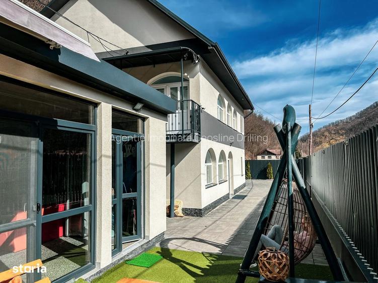 foisor este inca o baie si ciubarul care este incalzit electric astfel incat sa se poata face baie permanent.Afara este terasa cu masa lemn, acoperita.Piscina exterioara de 8m3 incalzita electric.Parcare este pentru asiniimativ 6-7 masini.Suprafata teren: 549 m2 cu amprenta casei inclusa.Podul este foartnumare, dar nu este amenajat (dispune de toata vata pentru izolatie - inclusa in pret)Disoune de camera tehnica in care se afla centrala electrica, aceasta avand posibilitatea de pornire prin aplicatie SMART de pe telefon, de la distanta.Dispune de centrala pe lemne functionala, dar pana acum s-a preferat sa fie folosita doar cea electrica pentru ca media costurilor lunare, curentul lunar este de 500 leiBoiler, poofer, langa o camera unde e spatiu de depozitare unde se tin si lemnele.Lemnele sunt gata pregatite pentru clienti pentru gratar.Apa este din put cu hidrofor, lampa cu ultraviolete pentru filtrare buna.Alte costuri ar fi: Digi 28 lei (internet cu WIFI si TV) si salubritatea 22