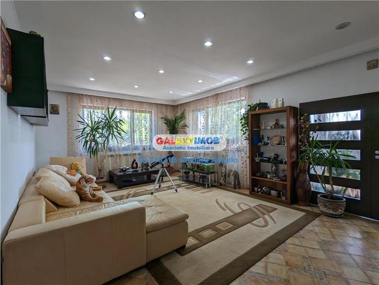 spate se maia afla o magazie anexa pentru depozitare. Gardul este din placi de beton ornamentate,cu poarta pentru acces catre garaj. Curtea a fost atent amenajata cu zone de trafic si gradinite cu flori si pomi.Incalzirea se face cu doua centrale una pe curent si alta pe peleti in functie de