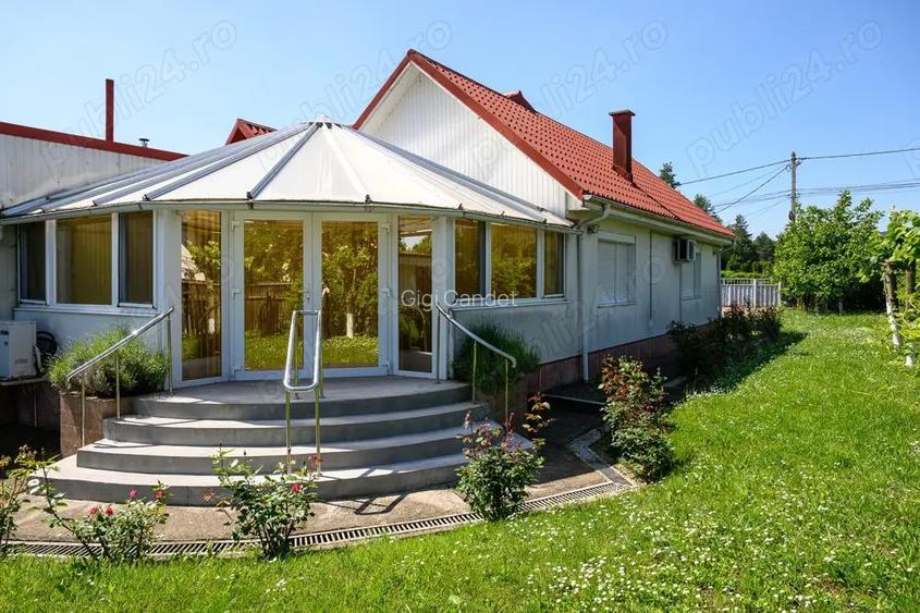 Casa are 250 mp utili, distribuita pe un singur nivel, compusa din living cu extindere (luminoar), 3 dormitoare, 2 bai (una cu cada, una cu du?) din care una in suita cu dormitorul matrimonial care are ?i un dressing, doua bucatarii (una rustica cu soba), 2 camere cu destina?ia de magazie, beci mare, pod, garaj ?i terasa cu gratar. Incalzirea este asigurata cu centrala ?i calorifere, dar exista ?i 4 sobe de teracota cu lemne. Pentru racire sunt montate 4 aparate de aer condi?ionat. In living exista un ?emineu cu lemne, func?ional. Alimentarea cu apa se face din pu? propriu cu hidrofor. Se vinde mobilata ?i utilata complet. Casa se vinde impreuna cu 3500 mp teren - curte, gradina, vie ?i livada cu pomi fructiferi. In curte exista o magazie de unelte ?i un chio?c care necesita renovare. Nu are vecini gard in gard, fiind marginita pe 3 laturi de drum comunal, iar in fa?a are deschidere la DN 15 - Calea Moldovei (vis-a-vis de Parcul Dendrologic Hemeiu?). ID anun? : 1749573065