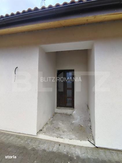BLITZ ofera spre vanzare o casa individuala cu 4 camere, situata intr-o zona curata, in dezvoltare, din Jucu de Mijloc. Proiectul imbina confortul designului arhitectural cu functionalitatea moderna, imobilul fiind construit pe un singur nivel. Proprietatea dispune de o suprafata utila de 114 mp, amplasata pe un teren de 750 mp. Compartimentare atent realizata: hol de acces, living cu zona de dinning, dressing, bucatarie, 3 dormitoare (unul matrimonial cu baie proprie si dressing), baie, camara (inaltimea camerelor este de 2.90 m), terasa de 8 mp. Pod: suprafata de 100 mp, placat cu OSB, podit cu lemn. Constructia este realizata din BCA, izolata termic pe exterior, asigurand confort termic si durabilitate.Locuinta se preda la stadiul de semifinisat si include urmatoarele dotari: centrala termica, incalzire in pardoseala, instalatii electrice si sanitare trase pe pozitii, geamuri termopan Salamander, pereti gletuiti si sapa autonivelanta, tencuiala exterioara. Dispune de toate utilitatile: gaz, curent, apa, canalizare. In curte sunt amenajate 2 locuri de parcare.Disponibilitate de vanzare pentru 2 proprietati similare, aflate in vecinatate.Poate fi considerata o locuinta excelenta pentru cei ce cauta un camin cu spatii generoase, functionale, intr-o zona ferita de agitatia urbana, in proximitatea viitorului proiect zonal pentru Complexul Balnear. Pentru o experienta completa si mai multe detalii va asteptam la o vizionare!Cod oferta / ID BLITZ: P165408