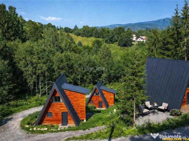 /watch?v=_c2_rVbGvM8 Proprietatea beneficiaza de un teren generos in suprafata de 4000 mp, oferind un cadru natural spectaculos, cu peisaje montane care iti taie rasuflarea si un potential deosebit atat pentru locuire, cat si pentru dezvoltarea unei afaceri de succes in domeniul turismului. Aceasta oferta include transfer de business, ceea ce o transforma intr-o oportunitate rara, pregatita pentru cei care doresc sa investeasca intr-un concept modern si atractiv, cu sanse reale de dezvoltare si profit. Arhitectura tip A Frame aduce un aer cosmopolit si elegant, imbinand armonios liniile simple si moderne cu farmecul materialelor naturale, creand astfel un ambient cald si primitor, perfect pentru relaxare si confort. Ansamblul de case, finalizat in anul 2025, este complet mobilat si utilat, fiecare locuinta fiind dotata cu mobilier de calitate, bucatarie complet echipata si utilata, aparate electrocasnice moderne, aer conditionat si finisaje deosebite care imbina eleganta cu functionalitatea. Fiecare unitate este conceputa cu grija pentru a oferi luminozitate, spatii functionale si o atmosfera de vacanta permanenta, toate acestea fiind completate de calitatea constructiei, realizata din beton armat si lemn, cu finisaje atent alese si dotari moderne. Pozitionarea ansamblului este una excelenta, intr-o zona linistita, dar totodata usor accesibila, ideala pentru cei care cauta atat refugiu in mijlocul naturii, cat si apropiere de principalele obiective turistice ale Branului si ale intregii zone montane. Cu un teren atat de generos, proprietatea permite dezvoltari ulterioare, extinderi si diversificari ale conceptului, oferind astfel posibilitatea de a contura o afacere prospera si durabila, cu multiple directii de exploatare. Aceasta oportunitate imbina intr-un mod spectaculos confortul unei locuinte moderne cu potentialul unei investitii sigure si profitabile, fiind alegerea ideala pentru cei care viseaza la un proiect rezidential sau turistic intr-o zona de o frumusete aparte, unde linistea naturii se intalneste cu eleganta si rafinamentul arhitecturii contemporane. Desigur ca particularitatea ofertei si detaliile particulare, ce o configureaza, invita la cunoasterea in detaliu! Consilier dedicat acestei oferte: domnul Florin Tonu