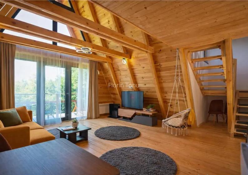 /watch?v=_c2_rVbGvM8 Proprietatea beneficiaza de un teren generos in suprafata de 5700 mp, oferind un cadru natural spectaculos, cu peisaje montane care iti taie rasuflarea si un potential deosebit atat pentru locuire, cat si pentru dezvoltarea unei afaceri de succes in domeniul turismului. Aceasta oferta include transfer de business, ceea ce o transforma intr-o oportunitate rara, pregatita pentru cei care doresc sa investeasca intr-un concept modern si atractiv, cu sanse reale de dezvoltare si profit. Arhitectura tip A Frame aduce un aer cosmopolit si elegant, imbinand armonios liniile simple si moderne cu farmecul materialelor naturale, creand astfel un ambient cald si primitor, perfect pentru relaxare si confort. Ansamblul de case, finalizat in anul 2025, este complet mobilat si utilat, fiecare locuinta fiind dotata cu mobilier de calitate, bucatarie complet echipata si utilata, aparate electrocasnice moderne, aer conditionat si finisaje deosebite care imbina eleganta cu functionalitatea. Fiecare unitate este conceputa cu grija pentru a oferi luminozitate, spatii functionale si o atmosfera de vacanta permanenta, toate acestea fiind completate de calitatea constructiei, realizata din beton armat si lemn, cu finisaje atent alese si dotari moderne. Pozitionarea ansamblului este una excelenta, intr-o zona linistita, dar totodata usor accesibila, ideala pentru cei care cauta atat refugiu in mijlocul naturii, cat si apropiere de principalele obiective turistice ale Branului si ale intregii zone montane. Cu un teren atat de generos, proprietatea permite dezvoltari ulterioare, extinderi si diversificari ale conceptului, oferind astfel posibilitatea de a contura o afacere prospera si durabila, cu multiple directii de exploatare. Aceasta oportunitate imbina intr-un mod spectaculos confortul unei locuinte moderne cu potentialul unei investitii sigure si profitabile, fiind alegerea ideala pentru cei care viseaza la un proiect rezidential sau turistic intr-o zona de o frumusete aparte, unde linistea naturii se intalneste cu eleganta si rafinamentul arhitecturii contemporane. Desigur ca particularitatea ofertei si detaliile particulare, ce o configureaza, invita la cunoasterea in detaliu! Consilier dedicat acestei oferte: domnul Florin Tonu