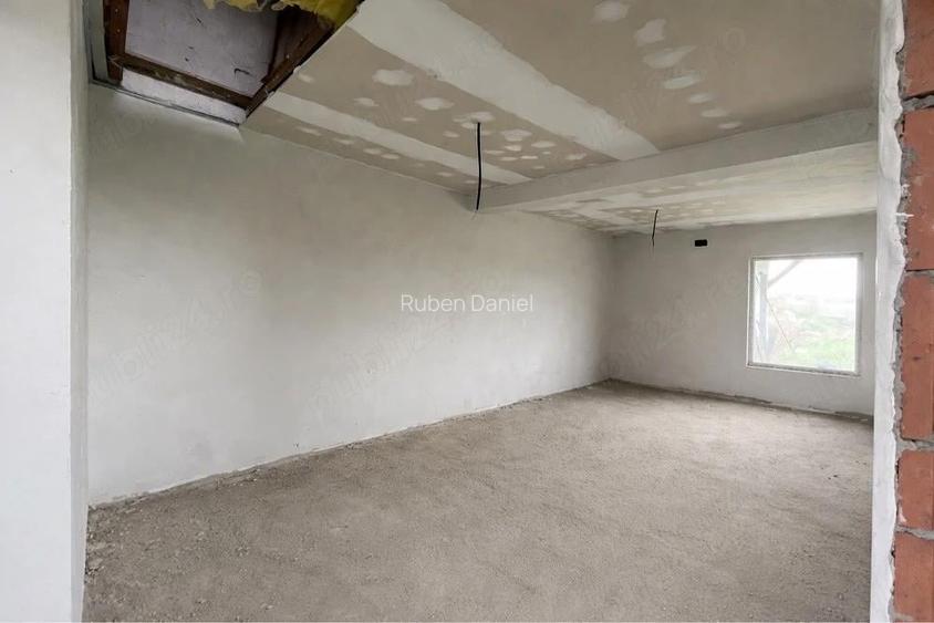 Duplex semi-finalizat de vanzare in Mo?ni?a Noua.Imobilul se afla intr-o zona in dezvoltare, cu acces la infrastructura ?i facilita?i. Proprietate direct de la proprietar alcatuita din hol,baie,2 dormitoare,living spa?ios si bucatarie open-space + pod cu posibilitate de mansardare. Duplexul dispune de 69 mp utili la care se adauga o terasa de 12 mp. Casa este in stadiul finisajelor,clientul avand posibilitatea de a alege piesele finale ( gresie,faian?a,parchet,mobilier, etc). Predare la cheie. Parcela are dimensiunea de 720 mp,fiecarei jumata?i de duplex revenindu-i cca. 310 mp. Casa dispune de toate utilita?ile : curent,gaz,canalizare. Pre?ul de 135.000 este u?or negociabil. ID anun? : 1775508111