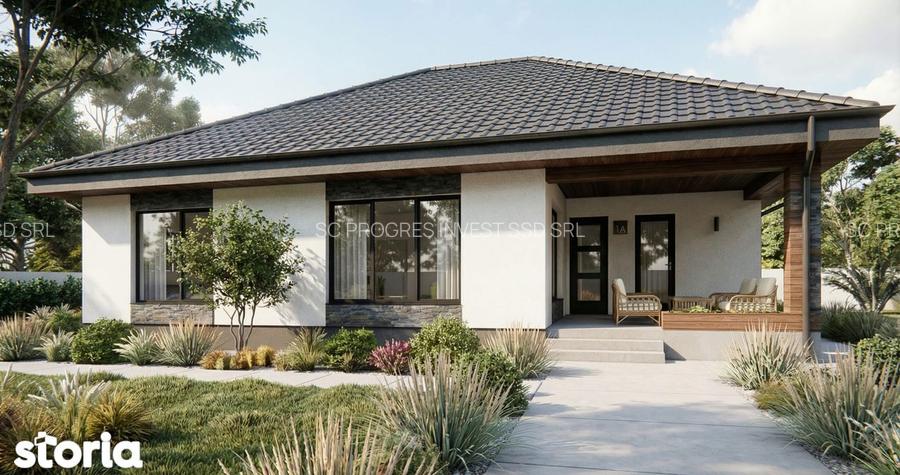 Descopera confortul unei locuinte moderne, perfect echilibrate intre functionalitate si eleganta, situata in linistita localitate Smeura, o zona apreciata pentru aerul curat si accesul rapid catre oras.Aceasta casa parter impresioneaza inca de la prima vedere prin arhitectura contemporana, acoperisul in patru ape si finisajele exterioare atent alese, care imbina armonios elemente naturale cu accente moderne. Terasa generoasa, acoperita, devine locul ideal pentru relaxare, fie ca iti incepi dimineata cu o cafea sau petreci seri linistite alaturi de familie si prieteni.Interiorul este inteligent compartimentat, oferind spatii ample si luminoase. Zona de zi este compusa dintr-un living primitor, perfect pentru momentele de relaxare, conectat cu un vestibul aerisit si acces facil catre restul incaperilor. Bucataria, pozitionata practic, ofera suficient spatiu pentru gatit si luat masa, fiind gandita pentru eficienta si confort.Locuinta dispune de 3 dormitoare bine proportionate, ideale atat pentru o familie, cat si pentru amenajarea unui birou sau spatiu de lucru. Cele doua bai asigura confortul necesar unei utilizari zilnice fara compromisuri, iar holurile sunt optimizate pentru o circulatie fluida in intreaga casa.Suprafata utila este generoasa, iar constructia este gandita pentru durabilitate si eficienta energetica. Ferestrele mari permit patrunderea luminii naturale pe tot parcursul zilei, creand o atmosfera calda si primitoare in fiecare camera.Exteriorul completeaza perfect aceasta proprietate, cu o curte ce poate fi amenajata dupa propriul gust fie pentru gradina, loc de joaca sau zona de relaxare.Aceasta proprietate este alegerea ideala pentru cei care isi doresc liniste, spatiu si un stil de viata echilibrat, la doar cateva minute de oras.