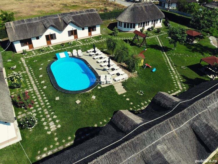 Vand afacere la cheie in Murighiol, Delta Dunarii, suprafa?a totala 2433 mp din care construita 375 mp. Pensiunea este compusa din 10 camere la standardul de 3 *** complet utilate ?i mobilate, cu grupuri sanitare proprii, bucatarie ?i salon de servit masa. Curtea interioara este dotata cu piscina, 2 foi?oare ?i terasa cu gratar. Pentru detalii suplimentare- . ID anun? : 1578080158