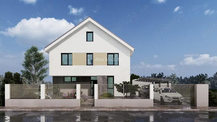 Proprietar ofer spre vanzare case P+1E, la ro?u, intre Oradea si Sanmartin pe strada Sztarill Ferenc, intr-o zona lini?tita, cu utilita?i (curent, apa-canal, gaz). Casele au 201,79 mp construi?i desfa?ura?i pe 495 mp de teren fiecare. Suprafa?a utila pentru fiecare dintre ele este de 150,29 mp. Suprafe?ele fiecarei camere se pot verifica in planurile ata?ate. Din punct de vedere functional casele se desfasoara pe doua niveluri, parter ?i etaj. Prin retragerea de 6 metri de la strada se creeaza o zona tampon, care acomodeaza 2 locuri de parcare exterioare (unul sub un carport autorizat). De asemenea este autorizata o anexa in prelungirea carport-ului. Din punct de vedere planimetric locuin?a este compusa la nivelul parterului dintr-un hol de acces, o baie cu acces dintr-un sas din apropierea scarii catre etaj, un birou accesat din zona holului central, un living cu dining, o bucatarie inchisa care poate fi accesata din living, o camara ?i un spa?iu de depozitare sub scara. O terasa exterioara acoperita dispusa spre sud-vest poate fi accesata din living ?i bucatarie. La nivelul etajului sunt prezente trei dormitoare, un dressing, ?i doua bai, toate accesate dintr-un hol central. Accesul in podul spa?ios ?i iluminat, care se poate folosi pentru depozitare, se face printr-un gol in plan?eu unde este prevazuta o scara mobila. Toate spa?iile sunt foarte bine iluminate respectandu-se toate criteriile de calitate atat din punct de vedere al iluminarii naturale cat ?i din punct de vedere al suprafe?elor. Casele se vand la stadiul de ro?u! Daca dori?i putem colabora in continuare pe partea de design de interior cu o reducere semnificativa. Va rog sa ma contacta?i pentru mai multe detalii. ID anun?