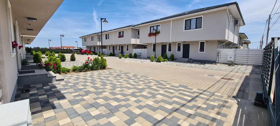 Ansamblul reziden?ial OTOPENI, Nicolae Iorga, 37,este FINALIZAT cu toate bransamentele realizate. Acest ansamblu reziden?ial este situat intr-o zona buna din ora?ul OTOPENI cu strazi asfaltate ?i acces u?or din ora?ul Bucure?ti. - cca 10 min Parcul Herastrau - Baneasa Shopping City - Complex Sportiv de Nata?ie Otopeni - Liceul Teoretic Ioan Petru? - Penny Market - LIDL - Mega Image *** la cca 100m Sta?ie de Autobuz *** Descriere ansamblu Toate bransamentele realizate. - apa Veolia Otopeni - canalizare - gaze - energie electrica - fibra optica - poarta acces rutier ac?ionata din telecomanda s-au telefon - poarta acces pietoni - drum asfaltat - stalpi pentru iluminat interior ansamblu *** FARA CHELTUIELI DE MENTENAN?A *** Oferta de vanzare curenta - Casa finisata la CHEIE cu materiale pe care le po?i alege chiar tu [ gresie, faian?a, parchet, obiecte sanitare, u?ile ?i scara din interior] gata sa te mu?i in 4-5 saptamani,,, ULTIMA casa . *** TVA-UL INCLUS *** Descriere imobile Case cuplate, despar?ite de 2 pere?i P + 1E + POD Parter - hol - baie cu cabina de du? - bucatarie - spa?iu depozitare - living - terasa 14m2 Etaj - hol - dormitor 16m + baie - dormitor 14m - dormitor 13m - baie 5m Pod, spa?iu depozitare 40m Podul este izolat cu spuma poliuretanica celula inchisa Casa este construita pe cadre din beton ?i caramida Tamplarie Salamander bluEvolution 82mm cu sticla tripan 44mm, 4 anotimpuri, feronerie germana Roto Suprafa?a construita 145m2 Suprafa?a utila 120m2 Suprafa?a teren 200-220m2 *** Doua locuri de parcare *** ID anun? : 1713626236