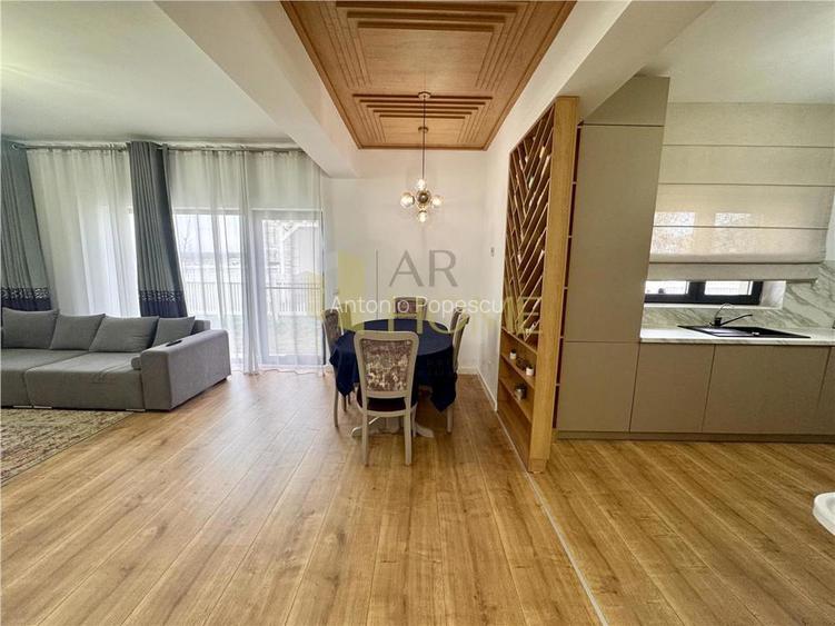 Vanzare casa 4 camere, constructie noua, in Paulesti, Prahova, la 3 minute fata de Ploiesti. Imobilul face parte din ansamblul rezidential MRS Country, beneficiind de cartier imprejmuit cu gard si acces prin bariere actionate electric, loc de joaca pentru copii, spatii verzi generoase complet amenajate, market, parc, strazi asfaltate si iluminat stradal, avand ca vecinatati MRS Ramatuell, mall Shopping City, padurea Paulesti etc. Este construita in anul 2022 cu fundatie de beton armat izolata termic cu polistiren extrudat si hidroizolatie, structura pe cadre de beton, peretii din caramida Porotherm inclusiv cei de compartimentare interioara, placa de beton, acoperis din tabla tip Lindab, tencuit la interior si izolat termic la exterior cu polistiren de 10 cm EPS 80. Amprenta casei este de 124 mp, suprafata utila 97,4 mp compartimentata astfel: hol (9,4 mp), living (24,9 mp), bucatarie (11,6 mp), hol 2 (3,8 mp), dormitor matrimonial (13,9 mp) cu dressing si baie proprie (4,7 mp), dormitor 2 (13 mp), dormitor 3 birou (11,6 mp), baie (4,7 mp) si pod. Terenul are o suprafata de 562 mp, deschiderea de 23 mp. Dotari exterioare: teren imprejmuit cu gard de lemn, alei pavate, gazon, gratar, vopsea decorativa etc. Dotari interioare: tamplarie Salamander 7 camere cu geam tripan, usi celulare Porta Doors, centrala termica proprie, incalzire in pardoseala cu termostat pe fiecare camera, distribuitor de caldura, ceramica Delta Studio, obiecte sanitare, parchet laminat, plinta PVC, vopsea lavabila etc. Se vinde complet mobilata si utilata cu aparat aer conditionat, masina de spalat vase rufe, plita pe inductie, cuptor electric, hota, combina frigorifica, perdele si draperii, corpuri de iluminat etc. Pret; 230000 euro. ID anun? : 1742482418