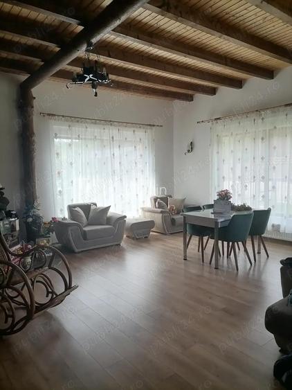 Se vinde casa la munte intr o zona deosebita, imprejmuita de padure ?i paraul Tarcau. Drumul de acces este asfaltat. Pe un teren de 1046 mp, avem edificata o casa P+M in supraf de 110 mp amprenta la sol, 220 mp desfa?urata. Casa este construita din lemn, cu funda?ie de beton, centura din piatra naturala, acoperita cu tabla tip Lindab. Parterul este compus din : 1 salon generos cu ?emineu func?ional, cu lemne, construit din piatra naturala, 2 holuri, bucatarie cu soba de teracota func?ionala , baie ?i 1 dormitor. Mansarda : hol, 4 dormitoare, 1 baie ?i 2 terase. Utilitati : curent, apa din sursa de izvor captata prin cadere, CT pe peleti automatizata ?i cu termostat racordata la calorifere si la boilere pt apa calda. Materialul predominant este lemnul de stejar, casa este izolata interior. Exterior : curte imprejmuita cu gard pe structura metalica, magazie cu camera centralei, fantana, 3 locuri de parcare, pomi fructiferi... Casa este locuita, se doresc 30 de zile pt mutare, se vinde mobilata. ID anun? : 1752310575