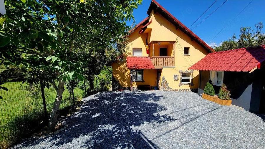 Casa de vanzare intr-o zona superba de munte in Dambovicioara, Arges, pe culoarul Rucar-Bran, la o distanta aproximativa de 29km de Castelul Bran. Casa se vinde la cheie, complet utilata; a fost foarte bine intretinuta si a beneficiat de imbunatatiri permanente de-a lungul timpului. Casa contine 3 dormitoare, 2 bai (1 baie cu dus si 1 baie de serviciu), 2 camere de zi (parter si etaj), bucatarie, 2 balcoane si 1 terasa acoperita, spatii de depozitare, gratar, zona de relaxare in spatele casei, parcare pentru 3 masini in fata casei, poarta glisanta automata cu telecomanda, camere de luat vederi. Casa: P + 1 + Mansarda (amenajata) An constructie: 1995 Acte la zi, cadastru si intabulare Structura: Lemn cu izolatie exterioara de polistiren 10cm + tencuiala Fundatie de beton armat Suprafata construita la sol: 86m2, desfasurata 156 m2 (+ mansarda amenajata approx. 30m2) Suprafata teren: 376m2 Utilitati: gaze, apa, electricitate, canalizare (la poarta - in curs de instalare), fosa septica (tank septic nou instalat in 2023) Incalzire: centrala pe gaze cu calorifere. Conexiuni de cupru instalate in 2023. Imbunatatiri recente: - ambele bai complet renovate (instalatii sanitare, electrice, tevi, pereti etc.) - 2023 - tevi cupru si conexiuni de cupru de la centrala catre calorifere; calorifere noi la parter - 2023 - parchet nou etaj si mansarda - 2023 - mobilier nou dormitoare, tvs, semineu electric - 2022 - gard si poarta pe sina automata cu remote control - 2022 - fosa septica noua - 2023 - teava principala de apa de la caminul de apa pana in casa a fost inlocuita in 2024 - amenajare totala curtea din fata si in spate - 2024 Vanzare directa de la proprietari. . Multumim celor interesati. Va rugam seriozitate. ID anun? : 1775477521