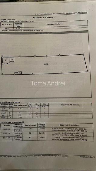 Proprietate cu teren generos de 5000 mp intravilan, situata intr-o zona linistita din Calinesti (judet Olt), ideala pentru locuinta sau investitie Teren: - suprafata totala: ~5000 mp intravilan - proprietate imprejmuita cu gard - proprietate imprejmuita cu gard - deschidere generoasa - 33,2m - curte + gradina - teren potrivit pentru agricultura, livada sau extindere Casa: - constructie solida din caramida (aprox. 1930) - suprafata casa: ~131 mp - anexe gospodaresti existente - sobe functionale din teracota - beci din caramida boltita - necesita renovare pentru a deveni locuibila Utilitati: - curent electric - apa municipala + fantana proprie in curte - acces direct la drum asfaltat - fara canalizare (toaleta in curte / posibilitate fosa septica) Avantaje: - zona linistita, aer curat - proprietate spatioasa, rara ca suprafata - acces facil din drum principal