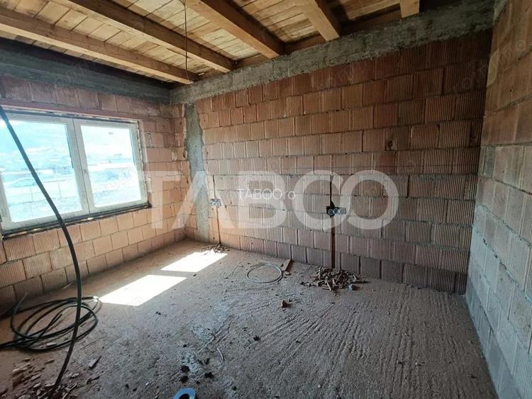 Doresti sa te muti intr-o zona mai linistita si retrasa? TABOO Imobiliare iti propune aceasta casa individuala de vanzare cu 4 camere si 500 mp de teren in Poplaca, la doar 10 km distanta de Sibiu. Aceasta casa de vanzare din Poplaca are regimul de inaltime Parter + 1 etaj + Pod si iti ofera numeroase spatii de depozitare, confort sporit, o liniste apasatoare si o priveliste impresionanta spre munti. Casa este compartimentata astfel: ~ Parter: hol spatios cu scara de acces la etaj, un living luminos de 30 mp, o baie, o bucatarie inchisa, foarte spatioasa si o camera tehnica terasa; ~ Etaj: hol, 3 dormitoare, 2 bai si un balcon; ~ Pod depozitare. Casa este in curs de constructie si se va preda in anul 2025; structura acesteia este din caramida si va fi prevazuta cu sistem de incalzire cu centrala proprie si incalzire in pardosea. Suprafata construita a casei este de 165 mp, suprafata utila 125 mp, iar terenul are o suprafata totala de 447 mp. Casa se vinde la stadiul de cheie in exterior , prevazuta cu gard, poarta de acces si teren indreptat si pregatit pentru gazon si cu alee de acces pavata. Casa are o curte libera 371 mp cu locuri de parcare, 1 garaj si suficient loc pentru zona de joaca a copiilor. La interior casa se va preda la stadiul de alb , semifinisat: ~ Usa intrare: pvc; ~ Tamplarie ferestre: pvc, termopan; ~ Izolatii exterior: exterior. La solicitarea dumneavoastra, exista si posibilitatea amenajarii locuintei cu echipa constructorului si predarea acesteia la stadiul de cheie. Pret: 210.000 Cod oferta / ID: P23155 Suna-ne acum la