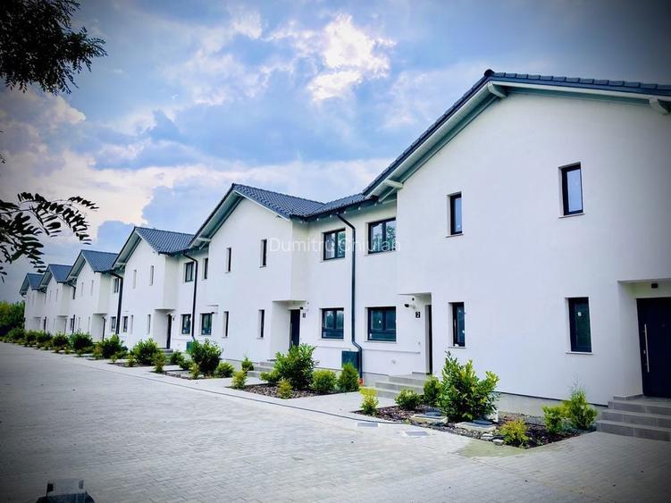 Locatie: strada Bisericii Nr. 109, la 400 metri de centrul localitatii , pe strada asfaltata. Suprafata casa: 105 mp util+pod +terasa 15 mp acoperita+gradina privata. Parterul este alcatuit din: living cu dining, bucatarie deschisa cu posibilitate de a fi inchisa, baie, Etajul este compus din: 3 dormitoare si o baie foarte generoasa; Podul este utilizabil si este izolat cu vata bazaltica Rockwool; Utilitatile sunt toate realizate: gaz, apa, curent, canalizare. Dotari tehnice: Exterior: -caramida porotherm , structura de beton armat, acoperis realizat cu lemn importat din Germania,tip KVH imbinat in dinti,C24; - fatada placata cu polistiren grafitat Baumit, eps 80, grosime10cm, tencuiala decorativa Baumit; -tamplarie Salamander premium cu 3 foi de sticla, usa de intrare cu maner metalic, usa glisanta pentru iesirea pe terasa; - pervaze exterioare din granit; -invelitoare realizata cu tigla Bramac Antracit; -sistem pluvial Lindab; Interior: -Instalatii electrice complete, aparataj Gewiss; -Instalatii termice in pardoseala REHAU, distribuitor colector la parter si etaj, sistem complet Rehau; -toti peretii interiori sunt tencuiti si complet finisati la cea mai inalta calitate; -gresia, faianta si parchetul sunt la alegerea fiecarui client; -usi de interior, furnizor Porta Doors ; -centrala termica in condensare; -toate izolatiile interioare de la acoperis sunt realizate cu vata bazaltica ; Important: Fiecare casa are o gradina privata in spatele casei cu suprafata de 115 mp cu o terasa acoperita ; Fiecare casa are la dispozitie 2 locuri de parcare in curtea Privata a proprietatii; Pret: 129.000 euro plus TVA ( 156.090 euro). Relatii la Nr. 07********31 Dumitru Chiulan.