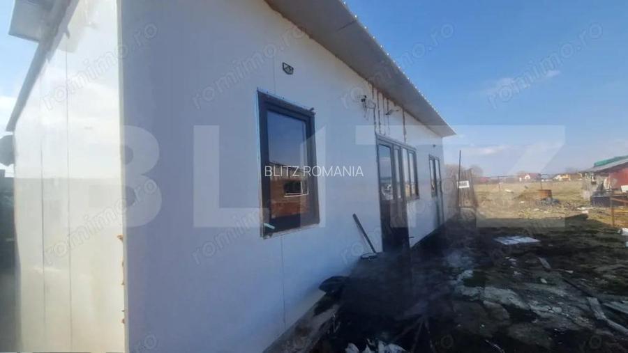 Se ofera spre vanzare o casa moderna construita din panouri sandwich, situata in localitatea Sanpetru, la mica distan?a de strada principala, intr-o zona lini?tita ?i in plina dezvoltare. Locuin?a este realizata pe structura u?oara, fiind necompartimentata la interior, ceea ce ofera noului proprietar libertatea de a-?i organiza spa?iul exact dupa propriile nevoi ?i preferin?e. Casa este dotata cu geamuri termopan, sistem de supraveghere video, alarma ?i beneficiaza de un sistem de panouri solare cu putere instalata de 5,2 kW, asigurand un consum redus ?i costuri minime de intre?inere. Proprietatea este imprejmuita, oferind intimitate ?i siguran?a. In prezent, construc?ia nu necesita autoriza?ie, fiind ideala ca locuin?a de vacan?a, insa poate fi utilizata fara probleme ?i pentru locuit permanent. Pe teren exista posibilitatea edificarii unei case pe funda?ie sau continuarea compartimentarii actualei construc?ii, in func?ie de planurile viitorului proprietar. In vecinatate se afla proprieta?i similare, locuite permanent, dotate cu pu? forat, cablu TV ?i panouri solare. La limita terenului se afla stalp de electricitate, oferind posibilitatea racordarii la re?eaua publica pentru cei care doresc acest lucru. Va a?teptam la vizionare pentru a descoperi poten?ialul acestei proprieta?i! Cod oferta / ID BLITZ: P165945 ID anun? : 1772613155