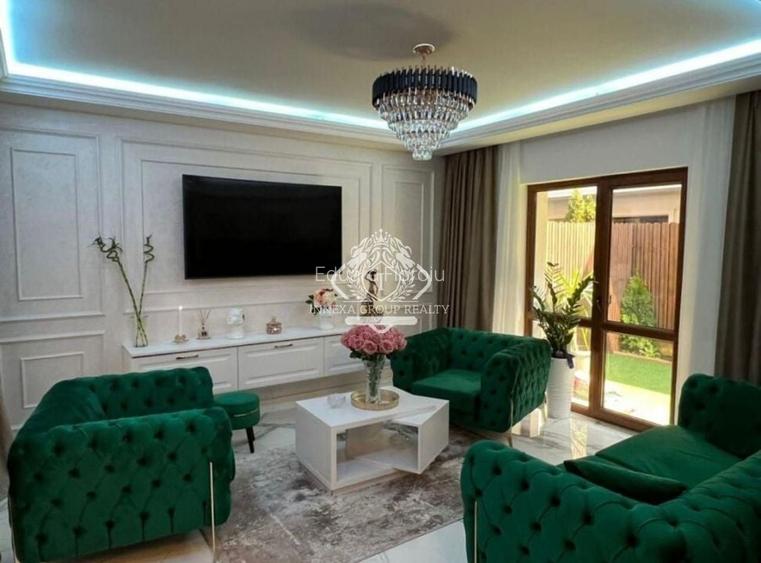 Vila prezinta fnisaje premium-materiale de o calitate superioara, import, peretii Stucco-sunt finisati cu un material de finisaj decorativ pentru interioare ce au creat suprafețe splendide cu un magnific efect metalizat fin, creand astfel spații plăcute și fascinante, atât clasice, cât și de design modern. Vilele au la intrare usa metalica de culoare alb, usi interior din lemn natural de culoare alb, scara interioara cu trepte din lemn natural de stejar de dimensiune 4,5cm, balustrada din sticla securizata maron si mana curenta din lemn, incalzire in pardoseala, aceasta fiind placata peste tot cu gresie, la parter sunt placi de dimensiuni mari 2,80x1,20, centrala proprie Immergas, la bucataraie peretele este placat cu faianta, baile sunt placate cu gresie si faianta, obiecte sanitare din import, cabina de dus cu rigola si panou din sticla, cada, chiuveta dubla in baia de la etaj 1.