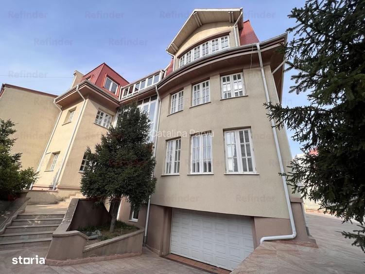 Agen?ia REfinder va propune spre vanzare un imobil situat in zona Unirii - 13 Septembrie - Marriott, desfa?urat pe D+P+2E, avand 16 camere, 10 bai, 3 bucatarii. Suprafata totala construita 1100 mp, utila 930 mp, amplasata pe un teren 650 mp, cu deschiderea de 24 ml. Imobilul are amprenta 308 mp, curtea individuala, teren in proprietate libera 340 mp. Imobilul este construit materiale de cea mai buna calitate, in mare parte importate. Vila are camere inalte si mari, usi din lemn masiv de stejar si geam de cristal bizotat, candelabre cristal Bohemia, marmura din Italia si granit din Egipt. Mobilierul este realizat pe comanda si personalizat spatiilor de locuit. Este structurata pe 4 nivele, demisol, parter si 2 etaje, construita din beton, avand pereti interiori cu o grosime de 30 cm, iar peretii exterior 50 cm, cu grinzi din beton. Vila are 2 intrari separate, o intrare pentru demisol, parter si etaj 1 si a doua intrare pentru etajul 2, cu acces interior spre demisol si garaj. La parter se afla un salon de lux, compus din 3 camere deschise , bucatarie, baie, dormitor, semineu, insumand 223 mp La etaj 1 se afla 4 dormitoare fiecare cu baie proprie, jacuzzi, semineu, dressing room pentru dormitorul matrimonial si terasa inchisa insumand 231 mp. La etajul 2 se afla 3 domitoare, 3 bai, 1 bucatarie si o terasa. Salonul are 90 mp, semineu, insumand 238 mp. Fiecare camera este dotata cu aer conditionat. Imobilul dispune si de o sauna originala finlandeza Harvia, cazi de baie cu jacuzzi, si o sala de sport. Proprietatea dispune si de un buncar antiatomic. Intrarea in imobil se face prin poarta pietonala care are asigurat controlul de acces automat prin centrala telefonica. Aleile de acces sunt pavate cu granit. Imobilul are doua garaje distincte situate la demisol, in primul garaj se poate parca o masina, iar in al doilea garaj 3 masini, avand intrari separate, usi de garaj automate cu telecomanda. Incalzirea imobilului se face din doua surse alternative, gaz naturale sau rezervor pacura motorina,4000 l. Pretabil locuinta birou. Pretul de vanzare este: 1.380.000 EURO. ID intern: 1125135. !!Pentru serviciile de intermediere imobiliara, Agentia percepe un comision de: 3% din pre?ul de vanzare!! !!Vizionarile se fac doar in baza semnarii in prealabil a Fisei de Vizionare.!!