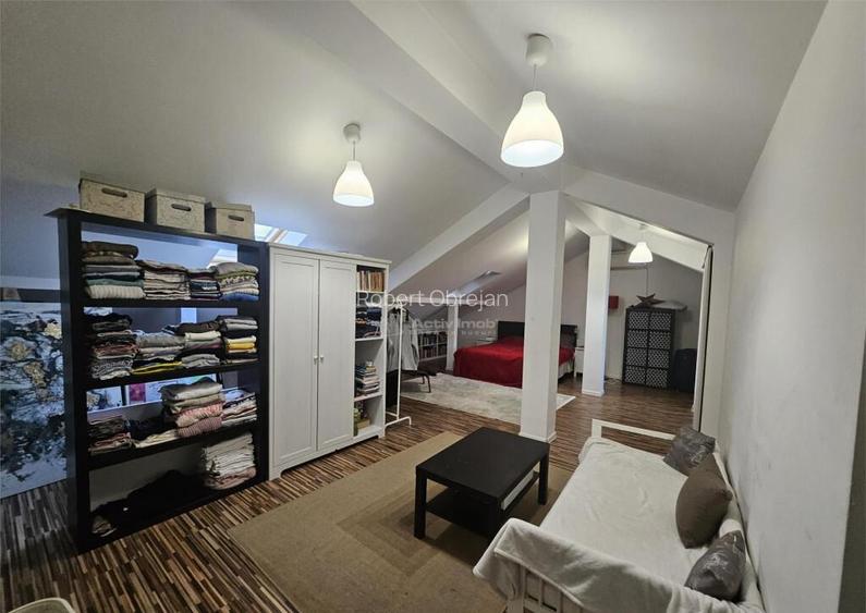 Activ Imob va propune spre vanzare o vila individuala superba, moderna si complet mobilata/utilata, in zona premium Militari Residence (Rosu, Sector 6). Construita inteligent P 1 M, cu suprafata utila de apx 240 mp (include si mansarda locuibila pe toata amprenta) curte generoasa de 450 mp. Gata de mutat maine ndash; zero renovari, finisaje high-end, mobilier modern si electrocasnice incluse! Locatie excelenta: Doar 300 m de celebrul Militari Residence Ballroom (ideal pentru evenimente), acces rapid la Centrul Comercial Militari, metrou, scoli, gradinite, supermarketuri, parc si iesire spre Centura/A1. Zona linistita, cu comunitate buna si toate facilitatile la indemana. Compartimentare spatioasa amp; luminoasa : - Parter (open amp; welcoming): Bucatarie moderna super-eleganta cu insula bar cu scaune, camara generoasa, living ultra-luminos cu geamuri inalte si acces spre curte (efect wow, lumina naturala toata ziua!), 1 dormitor/spatiu birou, 1 baie complet utilata. 2 intrari separate ndash; perfect pentru intimitate sau birou acasa. - Etaj (zona intima de noapte): 3 dormitoare spatioase, inclusiv matrimonial master cu baie proprie dressing urias (vezi pozele ndash; rafturi multe, spatiu pentru haine sezonier). 1 baie comuna eleganta. - Mansarda superba (inca un nivel full locuibil): Pe intreaga suprafata a casei ndash; 2 camere suplimentare spatiu dressing mare zona dedicata spalatorie (masina spalat, uscator, loc intins rufe). Complet mobilata: pat matrimonial rosu statement, zona relaxare cu canapea, rafturi carti, aer conditionat. Ideal pentru oaspeti, birou, gym sau camera copii/tineri! Dotari amp; finisaje premium (totul nou si modern): Mobilier amp; electrocasnice complete (bucatarie high-end cu insula, living smart cu TV mare, dormitoare elegante cu paturi tapitate, dressinguri organizate) Parchet lemn deschis, gresie/faianta premium, vopsea lavabila, usi interioare albe moderne, spoturi LED Lumina naturala exceptionala (mansarda cu ferestre Velux, geamuri inalte la parter/living) Curte amenajata: loc parcare cu priza dedicata masina electrica (rar si super util!), gratar fix terasa acoperita pentru BBQ/seri relaxante. Numar Bai: 3 Posibilitate parcare: Da Nr. locuri parcare: 4 Utilitati: Curent Publicat prin