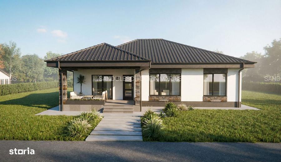 Descopera confortul unei locuinte moderne, perfect echilibrate intre functionalitate si eleganta, situata in linistita localitate Smeura, o zona apreciata pentru aerul curat si accesul rapid catre oras.Aceasta casa parter impresioneaza inca de la prima vedere prin arhitectura contemporana, acoperisul in patru ape si finisajele exterioare atent alese, care imbina armonios elemente naturale cu accente moderne. Terasa generoasa, acoperita, devine locul ideal pentru relaxare, fie ca iti incepi dimineata cu o cafea sau petreci seri linistite alaturi de familie si prieteni.Interiorul este inteligent compartimentat, oferind spatii ample si luminoase. Zona de zi este compusa dintr-un living primitor, perfect pentru momentele de relaxare, conectat cu un vestibul aerisit si acces facil catre restul incaperilor. Bucataria, pozitionata practic, ofera suficient spatiu pentru gatit si luat masa, fiind gandita pentru eficienta si confort.Locuinta dispune de 3 dormitoare bine proportionate, ideale atat pentru o familie, cat si pentru amenajarea unui birou sau spatiu de lucru. Cele doua bai asigura confortul necesar unei utilizari zilnice fara compromisuri, iar holurile sunt optimizate pentru o circulatie fluida in intreaga casa.Suprafata utila este generoasa, iar constructia este gandita pentru durabilitate si eficienta energetica. Ferestrele mari permit patrunderea luminii naturale pe tot parcursul zilei, creand o atmosfera calda si primitoare in fiecare camera.Exteriorul completeaza perfect aceasta proprietate, cu o curte ce poate fi amenajata dupa propriul gust fie pentru gradina, loc de joaca sau zona de relaxare.Aceasta proprietate este alegerea ideala pentru cei care isi doresc liniste, spatiu si un stil de viata echilibrat, la doar cateva minute de oras.