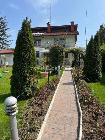 Beneficiaza de o gradina amenajata si de o piscina exterioara, avand priveslistea minunata catre lacul Snagov.