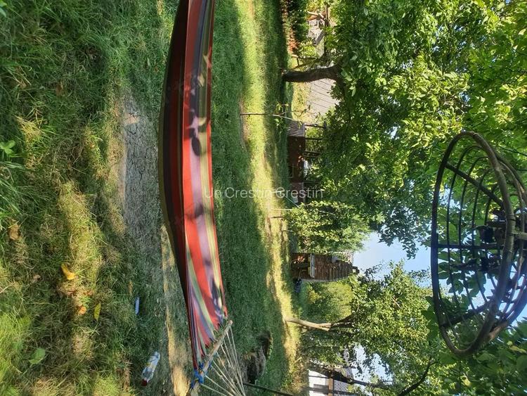 Teren: aprox. 2400 mp. Loca?ie superba in proximitatea padurii. Toate formele de relief. Casa batraneasca din chirpici, renovata integral in interior ?i par?ial in exterior (cu materiale naturale), transformata in casa de vacan?a ecologica cu aspect rustic, tradi?ional. Doua camere, bucatarie, baie, hol, debarale. Pentru o descriere exhaustiva (aici nu-mi permite), va rog sa intrati pe
