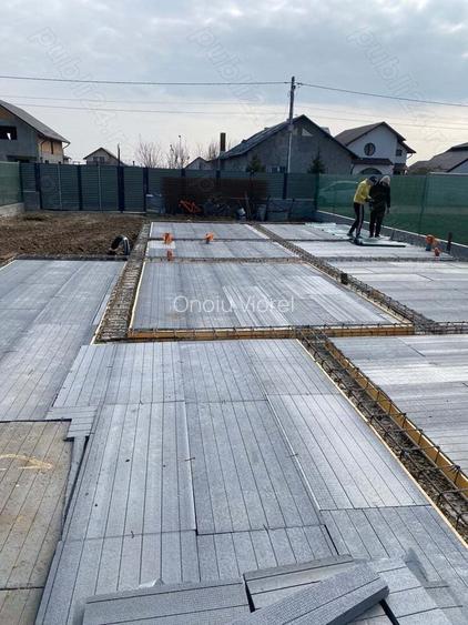 Propunem spre vanzare casa unifamiliala , formata din 2 dormitoare spa?ioase , cu dressing ?i baie incorporate, de 14 ?i respectiv 16 mp , o incapere ampla ce cuprinde living-ul, dinning-ul ?i vestibul-ul, insumand 30 mp, o bucatarie generoasa de aproape 14 mp, cat ?i o terasa intinsa de peste 35 mp. Casa dispune ?i de un beci prefabricat de 6 mp, accesul facandu-se din terasa. Imobilul este in curs de edificare, fiind executat pana in prezent, conform autoriza?iei de construire, etapa de rezisten?a compusa din funda?ie, eleva?ie ?i placa de egalizare, adica cota 0. A fost executata, conform proiect, atat partea de canalizare ce va fi utilizata in cele 2 grupuri sanitare ?i bucatarie, pentru to?i consumatorii existen?i , cat ?i alimentarea generala cu apa rece . Practic pentru a edifica casa la ro?u, mai sunt necesari decat pere?ii de compartimentare ?i acoperi?ul! Proiectul dispune de bran?amente de apa ?i curent definitive. Aceasta casa este ridicata pe un teren de 798 mp, teren ce a fost imprejmuit ?i i-au fost deja aduse lucrari ce constau in drenarea ?i direc?ionarea prin panta a apelor pluviale, lucrari de aport ?i nivelare cu pamant negru de padure cat ?i insaman?are gazon. Imobilul se construie?te intr-un cartier de case noi, zona fara galagia ?i vacarmul cotidian , ferit de aglomera?ie ?i crescatori de animale , ideal pentru familii care cauta lini?te . Proiectul se poate preda in starea actuala la suma de 80000 euro. ID anun? : 1740161959