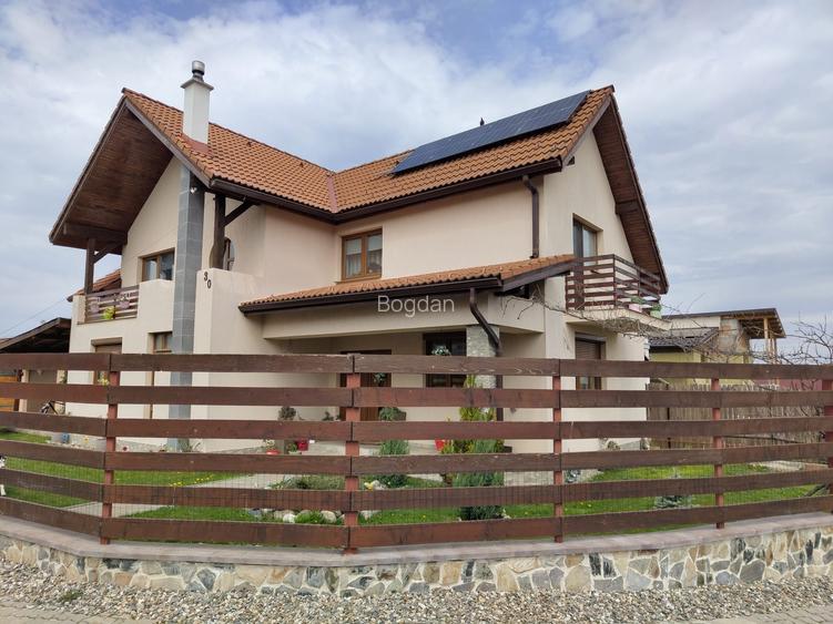 Casa moderna de vanzare in Sura Mica, langa Sibiu Va propunem spre vanzare o proprietate deosebita situata in comuna Sura Mica, la doar cateva minute de Sibiu, ideala pentru o familie care isi doreste confort, spatiu si liniste. Casa este compartimentata inteligent si ofera: Parter: * living generos si luminos * bucatarie spatioasa * baie * camera de oaspeti Etaj: * 3 dormitoare * baie * dressing * 3 balcoane Proprietatea dispune de numeroase facilitati care sporesc confortul: * terasa mare acoperita, perfecta pentru relaxare * spatiu special amenajat pentru gratar * garaj * spatiu tehnic / camara * incalzire in pardoseala parter si baia de la etaj * semineu pe lemne Un mare avantaj il reprezinta sistemul fotovoltaic cu baterie de stocare de 7 kW, care asigura eficienta energetica si costuri reduse. De asemenea, poarta de acces si usa garajului sunt actionate electric, prin telecomanda sau aplicatie mobila. Suprafete: * teren: 500 mp * suprafata construita desfasurata: 191 mp Aceasta proprietate imbina perfect functionalitatea cu confortul modern, fiind alegerea ideala pentru cei care isi doresc o locuinta intr-o zona linistita, dar aproape de oras, scoala generala si gradinita pe aceeasi strada. Pentru mai multe detalii sau programarea unei vizionari, nu ezitati sa ne contactati! Nu doresc colaborare cu agentie imobiliara !