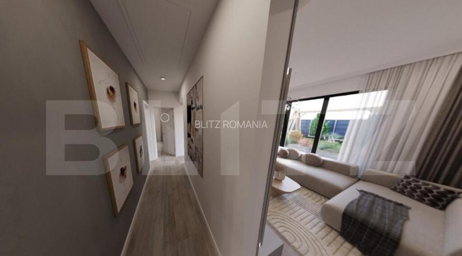 Blitz va propune spre vanzare casa individuala construita pe un singur nivel cu trei camere si teren in PRIMUL cartier VERDE , la aproximativ 5 minute de centrul orasului. Locuinta este dotata cu centrala pe gaz ce asigura in mod eficient incalzirea locuintei prin pardoseala si prepararea apei calde menajere, dar si racirea pasiva a casei in lunile de vara.Este bransata la reteaua publica de alimentare cu apa si canalizare. In plus, ca parte din dotarea standard, vor fi instalate panouri fotovoltaice de aproximativ 6kw astfel incat sa poti deveni prosumator si implicit consum net anual de energie aproape de zero. Suprafata construita a parterului este de aprox. 87 mp si este compusa din: living, bucatarie, vestibul, dormitor matrimonial cu baie, dormitor 2, baie cu dus, camera tehnica. Terasa exterioara este de aprox. 19 mp. Suprafata desfasurata a locuintei este de circa 106 mp. Dispune de loc de parcare amenajat iar pentru cei care isi doresc acest lucru, este disponibila si optiunea achizitionarii unui garaj inchis simplu sau dublu, cu usa automata. Locuinta este in faza de finalizare finisaje, imaginile fiind cu titlu de prezentare. Pentru detalii suplimentare si programare vizionare nu ezitati sa ne contactati. Cod oferta / ID BLITZ: P127971 Id intern: P127971 Numar Bai: 2 Nr. locuri parcare: 2 Curent Apa Canalizare Publicat prin