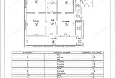 Agentie imobiliara ofera in exclusivitate casa pe un singur nivel din caramida vaiuga ( 70 30) in suprafata utila de 100mp casa plus 860 mp terenul cu 2 fronturi stradale de 12 mp fiecare, costructie din anul 1965, cu gard de beton si sarma, avand toate utilitatile racordate la reteau orasului, instalatia de canalizare si alimentare cu apa schimbata recent, in totalitate, incalzirea se realizeaza prin centrala proprie pe gaz, la 3 minute de mijloacele de transport in comun. Casa este compusa din 3 camere de 24 mp, 25 mp si 11 mp, un antreu de 7 mp, o terasa inchisa de 6 mp, o bucatarie de 14 mp, o baie de 11 mp si o camara de 6 mp. Peretii sunt in vopsea lavabila, pardoseala este din parchet din lemn masiv reconditionat respectiv din gresie. Instalatia electrica necesita reconditionare, geamurile si usile interioare exterioara sunt din lemn masiv. Pe teren se afla doua anexe si exista acces auto prin 2 puncte. Zona Lipovei-Aradului. Pret 178.000 euro. Tel