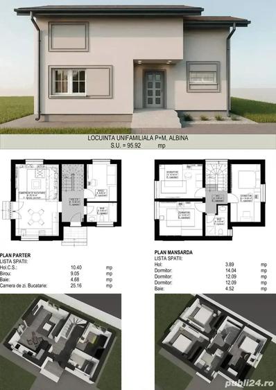 Dezvoltator imobiliar, vand casa individuala in comuna Mo?ni?a Noua localitatea Albina Casa dispune de toate utilita?ile , apa de la re?ea, canalizare, curent, gaz, fibra optica, iluminat stradal) ?i se afla pe prima strada la stanga cand se intra in Albina(str bostinarilor) , la doar cateva minute de Timi?oara. In imediata apropiere se afla centre comerciale unde pute?i gasi marea majoritate a magazinelor gen Auchan, Lidl, Kaufland, Mega Image, Profi, Jysk, Prospero, pizzerii, restaurante, banci, farmacii, etc. Tipologia casei este P + M iar suprafa?a utila de 96 mp utili! . Casa este construita pe un teren cu o suprafa?a de 500 mp, cu o curte disponibila utila de 400 mp ?i este realizata cu materiale din gama premium, avand urmatoarea configura?ie : - la parter : hol intrare, baie, birou(dormitor) living+ bucatarie - la etaj : 3 dormitoare, 1baie, acces in pod cu spa?iu util generos; DETALII TEHNICE: - construc?ia este realizata cu materiale din gama premium ; - caramida Cemacon ECO 24 LM 24 cm ; - instalatii sanitare si incalzire in pardoseala marcile Purmo - tencuiala mecanizata ( Baumit MPI 25 ) ; - gleturi Baumit FinoGrande si FinoBello ; - lavabile interioare Kober Zertifikat cu ioni de argint ; - Tamplarie Aluplast 86 cm, MD Premium, cu extensii profil 7 camere 3 garnituri feronerie ROTO- NX sticla Guardian termopan triplu clima guard-solar exterior interior LOW-E premium ; - centrala termica Ariston, in condensa?ie ; - izola?ie suplimentara pe parter cu polistiren de 5 cm ( sub ?apa sub incalzirea in pardoseala ) ; - acoperi? cu ?igla de beton - instala?ii electrice realizate cu materiale premium - finisaje interioare ?i exterioare premium din gamele Knauf, Baumit, Caparol; - izolarea exterioara este realizata cu polistiren CAPAROL de 10 cm - clasa energetica A - gama Dalmatina si tencuiala decorativa siliconica Caparol; Bugetele pt parchet, gresie, faian?a, obiecte sanitare la intalegere! Pt vizionare ?i mai multe detalii, contacta?i-ne pe whastapp sau telefonic. Pentru mai multe detalii si explicatie amanun?ita va astept la vizionare! Pret 145000euro la cheie Se poate vinde si la gri in interior si la cheie in exterior Tel ID anun? : 1764498730
