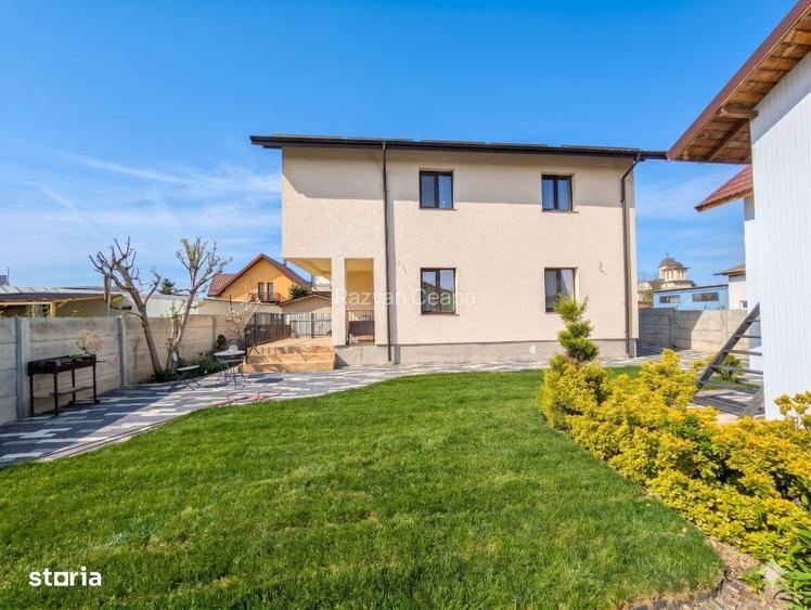 Va oferim spre achizitie fara comision o casa individuala superba, cu finisaje si dotari de calitate, mobilata si utilata la un nivel inalt de calitate. Casa are 4 camere, 110 mp si beneficiaza de un teren de 350mp cu terasa, gazon, garaj, magazie. Se vinde mobilata si utilata ca in poze cu mici exceptii (patul si obiecte personale) Casa este localizata pe un drum privat in apropiere de primarie si centrul Tunari, cu acces din strada Ceair. Asa cum v-am obisnuit: - toate ofertele Monga Imobiliare sunt fara comision din partea cumparatorului - pentru ca iubim transparenta, toate preturile afisate de Monga Imobiliare includ TVA (daca se aplica). Pretul afisat de noi este intotdeauna pretul final pe care il vei achita. Acceseaza Monga Imobiliare (Monga RO) pentru mai mai multe poze si pentru intreg portofoliul nostru de case si apartamente din Otopeni, Tunari, Balotesti, Corbeanca, Pipera si chiar nordul Bucurestiului. Punctele forte al acestei case sunt numeroase: amenajarea de calitatea, curtea spatioasa si localizarea cu acces usor atat catre Otopeni cat si catre Pipera. Se vinde mobilata fiind disponibila pentru utilizare imediata. Despre spatiu: La parter, accesul se face intr-un hol ce comunica cu o baie, scara catre etaj si mai departe cu zona de living-dining foarte spatioasa. De aici accesam bucataria inchisa cu perete glisant de sticla si terasa. La etaj avem un dormitor matrimonial cu baie proprie, inca doua dormitoare si o baie. Baia din dormitorul matrimonial este amenajata de catre proprietari ca si dressing, dar este pregatita pentru a fi utilizata ca baie daca se doreste. In curte avem o terasa, spatiu liber, garaj si magazie. Utilitati - casa este conectata la curent si gaz - 2 puturi (unul separata pentru irigatie) si fosa - sistem premium de filtrare a apei - apa si canalizare trase recent in zona, cu posibilitate de conectare pe viitor. - centrala termica cu calorifere - aer conditionat Despre constructie: - constructie 2019, finisaje realizate in 2023 Despre locatie: - Scoli si gradinite de stat si private in apropiere - Lidl, Mega Image, Penny - Acces rapid catre Otopeni, Pipera, Nordul Bucurestiului, DNCB si DN1 Va asteptam la vizionare pentru a descoperi toate aceste detalii si multe altele ale acestei proprietati. Apeleaza cu incredere la Monga Imobiliare. Suntem alaturi de tine pana la finalizarea tranzactiei si te ajutam sa treci cu incredere si in cunostinta de cauza prin toti pasii necesari. Te putem ajuta in pregatirea documentelor, selectia notarului, obtinerea finantarii, si altele. Te asteptam sa ne contactezi.
