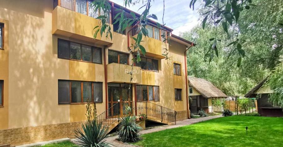 Localizare si Context Situata in inima Deltei Dunarii, in pitoreasca localitate Uzlina, Pensiunea Prodelta ofera o experienta unica de cazare intr-un cadru natural deosebit. Aceasta proprietate impresionanta este locul ideal pentru turistii care doresc sa exploreze frumusetea Deltei Dunarii, combinand confortul modern cu farmecul traditional al zonei. Descrierea Proprietatii Cladirea destinata cazarii se intinde pe o suprafata de 283 mp, structurata pe parter, etaj si mansarda, oferind 8 camere duble si 2 apartamente spatioase. Fiecare dintre cele 10 camere duble este echipata cu bai proprii, internet wireless si toate facilitatile necesare pentru un sejur confortabil. Camerele sunt amenajate astfel: 6 camere cu paturi twin si 4 camere cu paturi matrimoniale. Apartamentele sunt perfecte pentru familii sau grupuri mici, fiecare avand un dormitor cu pat matrimonial, un living cu canapea si o baie dotata cu hidromasaj, bideu, uscator de par, minibar, aer conditionat si internet wireless. Facilitati si Servicii Restaurant si Bucatarie: Separat de cladirea destinata cazarii, restaurantul de 202 mp poate gazdui pana la 32 de persoane, fiind perfect pentru mese organizate sau evenimente speciale. Bucataria este complet echipata la standarde HORECA, asigurand preparate delicioase pentru toti oaspetii. Pensiunea dispune de o piscina de 36 mp, ideala pentru relaxare si racorire in zilele calde de vara. Un foisor cu acoperis din stuf si terasele ofera spatii de relaxare in aer liber, completand experienta de vacanta. Casute din Lemn: Pe langa cladirea principala, proprietatea include doua casute cu mansarda construite din lemn, adaugand un plus de autenticitate si confort. Infrastructura si Echipamente Instalatie de filtrare a apei menajere si statie Rewatec de epurare a apelor uzate, asigurand un mediu curat si sustenabil. Ponton Gillgetter 722: Disponibil pentru grupuri mari (10 persoane), ideal pentru excursii si explorari in Delta Dunarii. 4 barci cu motor (capacitate 2-4 persoane, motoare de 10-20CP) pentru aventuri pe apa si vizite la atractiile din apropiere. Cazare pentru Personal Cladirea destinata cazarii personalului, desfasurata pe parter si mansarda, asigura spatii confortabile si functionale pentru angajati. Pensiunea reprezinta o oportunitate excelenta pentru investitii in turismul din Delta Dunarii. Cu facilitati complete, infrastructura moderna si un cadru natural de exceptie, aceasta proprietate este pregatita sa ofere oaspetilor sai o experienta memorabila si relaxanta. Id intern: P5660 Numar niveluri imobil: 2 Numar Bai: 12 Comision cumparator: 0% Curent Apa Clima Publicat prin HomeZZ.ro, vezi anuntul complet aici.