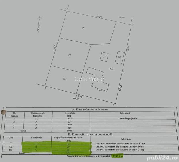 Adresa: sat Vacareasca, comuna Glodeanu Sili?tea, jude?ul Buzau Suprafa?a totala: 1.948 mp Apa curenta Apa forata in curte (18 metri adancime) Conducta de gaz la 5 metri de poarta Vi?a de vie (300 mp) ?i bolta cu vi?a de vie Pomi fructiferi ID anun? : 1769169119