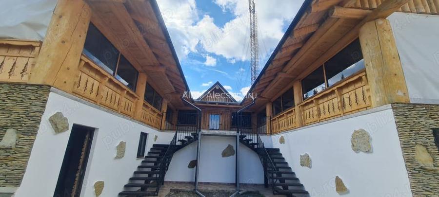 Terasa din lemn rotund de 570 m patrati Autorizatii DSP, DSV, mediu Utilitati- apa, curent, fosa Acces din drumul DN17 Aproximativ 10 000 m patrati + 3 case de aproximativ 120m patrati parter + mansarda, una dintre ele total functionala ID anun? : 1715674956