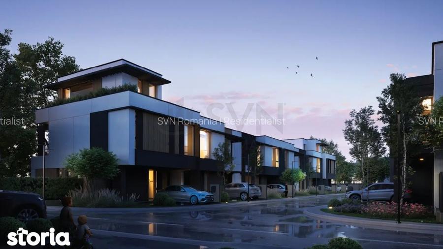 REV2005438 SVN Residentialist Floreasca va propune spre vanzare o vila situata in complexul rezidential Bellemonde Residence din Pipera. Vila este dispusa pe doua niveluri, parter si etajul 1. Zona de zi, situata la parter, ofera un living generos, o zona de dining si o bucatarie moderna, open-space. Spatiul beneficiaza si de un grup sanitar si de o camera tehnica. Etajul este dedicat odihnei si include 3 dormitoare. Dormitorul matrimonial dispune de baie proprie si dressing, oferind intimitate si confort proprietarilor, iar cele doua dormitoare secundare sunt ideale pentru copii sau oaspeti, fiecare avand spatiu suficient si lumina naturala. Baia suplimentara de la etaj completeaza compartimentarea eficienta si practica a locuintei. Unul dintre avantajele acestor locuinte este separarea clara intre zona de zi si zona de noapte, asigurand o circulatie logica si eficienta a spatiului, care raspunde nevoilor unei familii moderne. Vila beneficiaza de o gradina privata si o terasa extinsa, oferind spatii exterioare perfecte pentru relaxare sau socializare, inconjurate de verdeata. Pentru mai multe informatii sau pentru programarea unei vizionari, nu ezitati sa ma contactati.