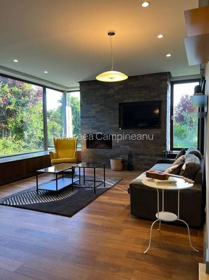 Vila este complet mobilata si utilata, design arhitect, semineu in living si este impartita astfel: